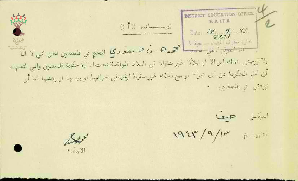 شهادة نفي ملكية-محمد حسن صفوري/صفورية