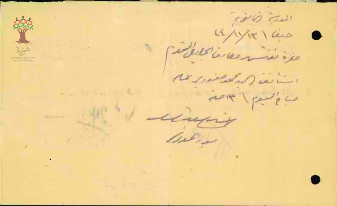 رسالة من مدير مدرسة حيفا الى مفتش المعارف بخصوص عودة المعلم محمد صفوري الى العمل