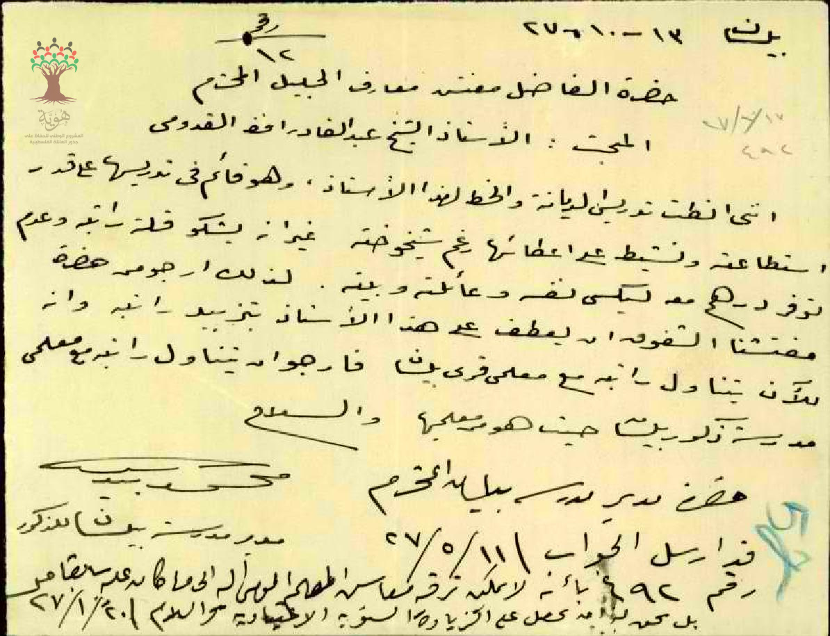 رسائل بخصوص امكانية زيادة راتب المعلم عبد القادر قدومي