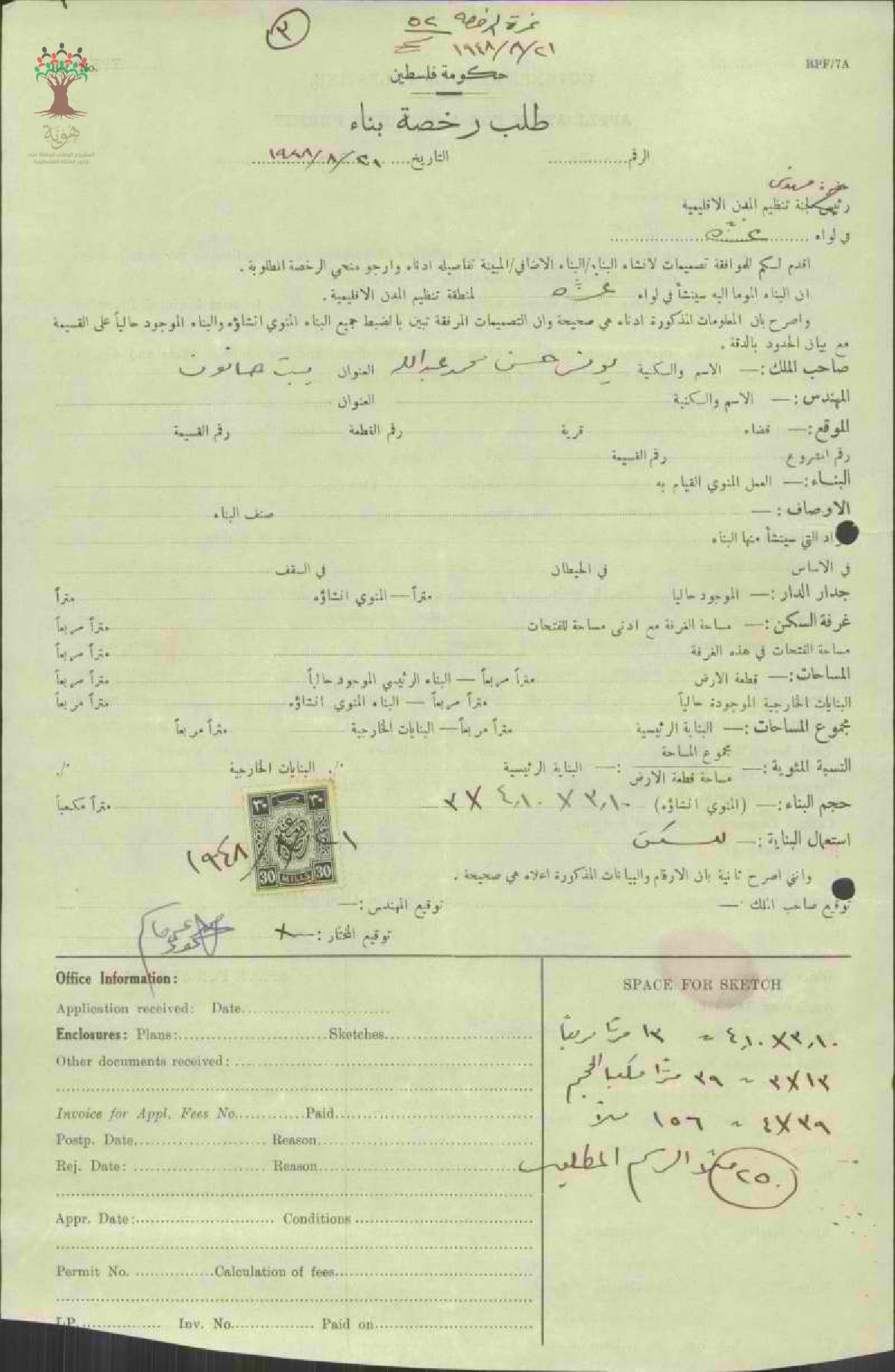 طلب رخصة بناء - يونس حسن محمد عبد الله - بيت حانون