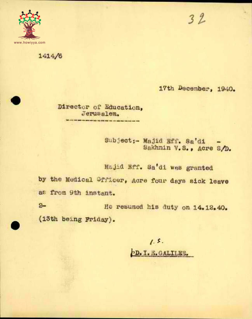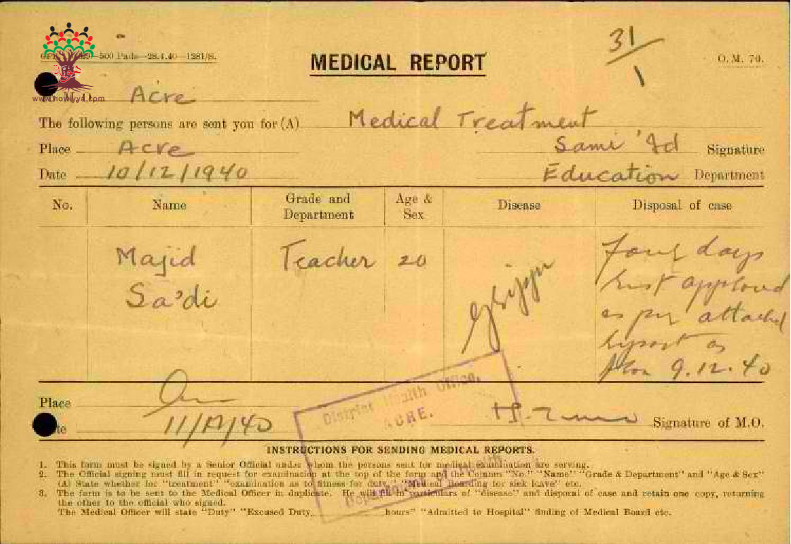 تقرير طبي مقدم من قبل المعلم ماجد السعدي - عكا - مدرسة سخنين