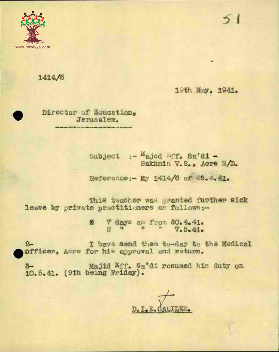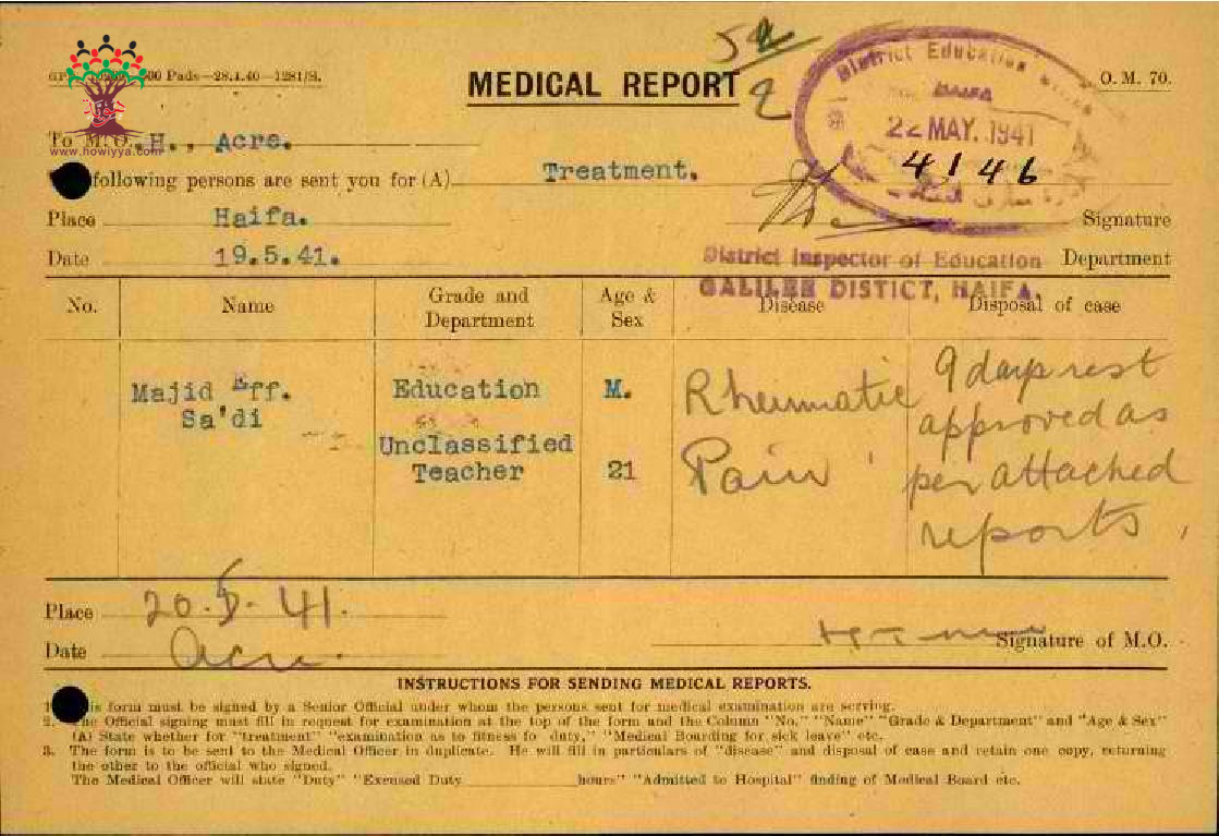 تقرير طبي مقدم من قبل المعلم ماجد السعدي - عكا - مدرسة سخنين