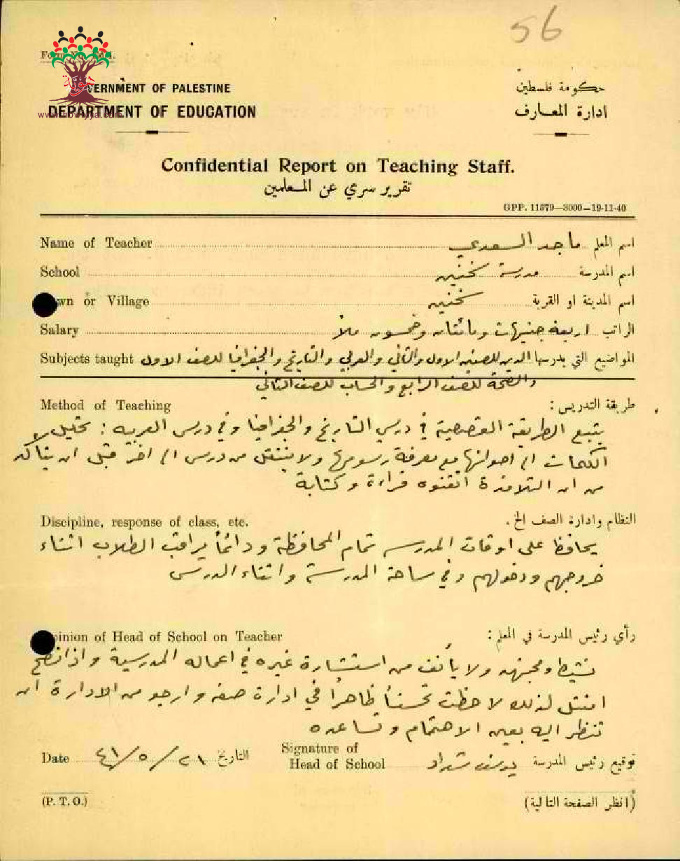 رأي مدير مدرسة سخنين بالمعلم المعلم ماجد السعدي - عكا - مدرسة سخنين