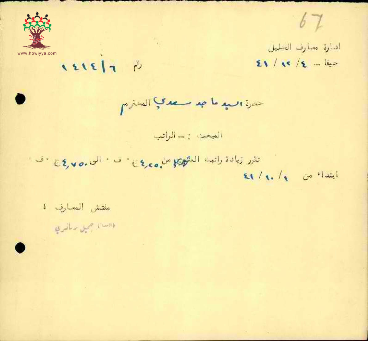 زيادة مرتب المعلم ماجد السعدي - مدرسة سخنين - عكا