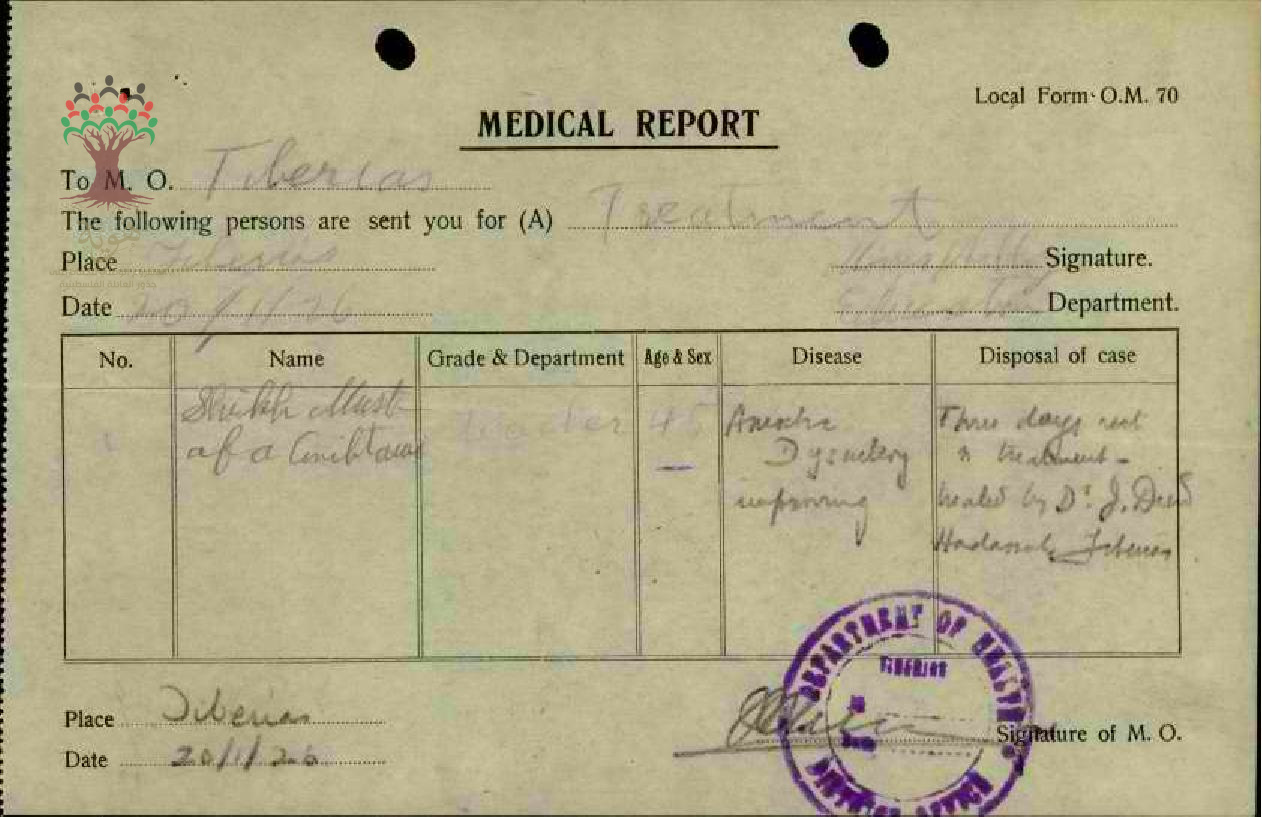 تقرير طبي عن غياب المعلم مصطفى عنبتاوي-مدرسة لوبيا