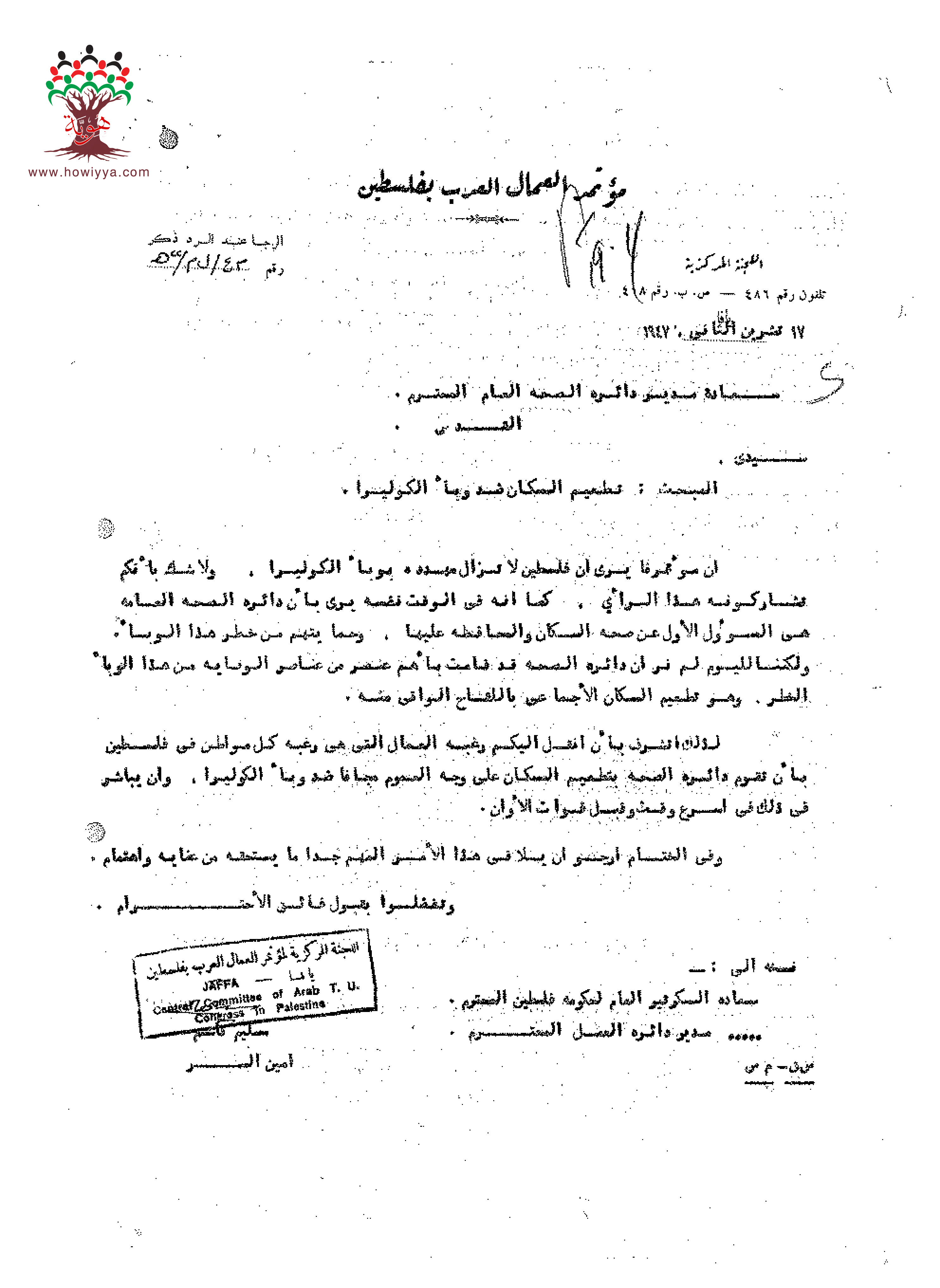 مؤتمر العمال العرب يطالب بتطعيم السكان ضد وباء #الكوليرا مجاناً