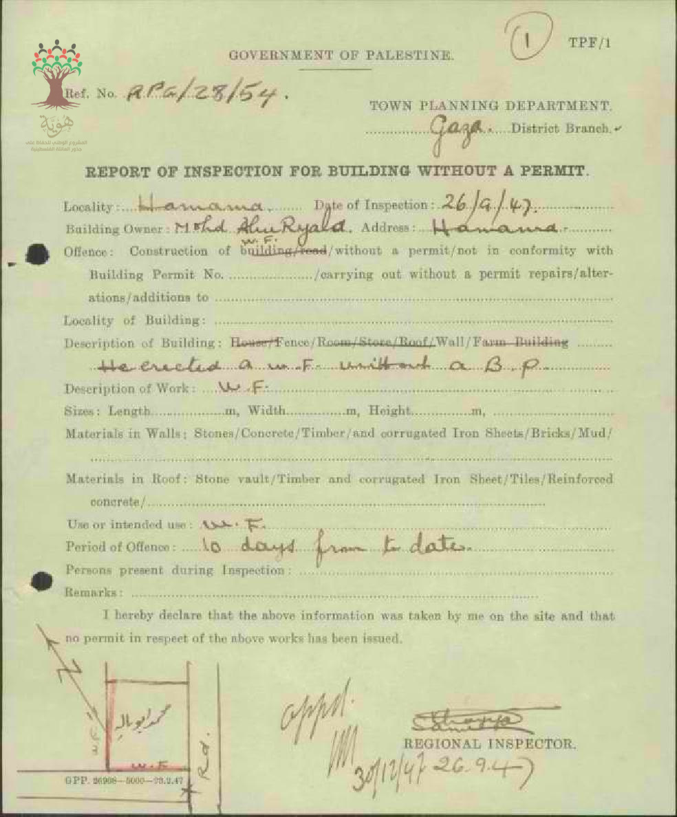 رسالة من دائرة تنظيم المدن للسيد محمد أبو ريالة بخصوص إقامة بناء بدون رخصة