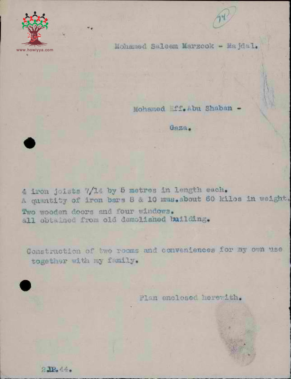طلب رخصة بناء - محمد سليم مرزوق - المجدل