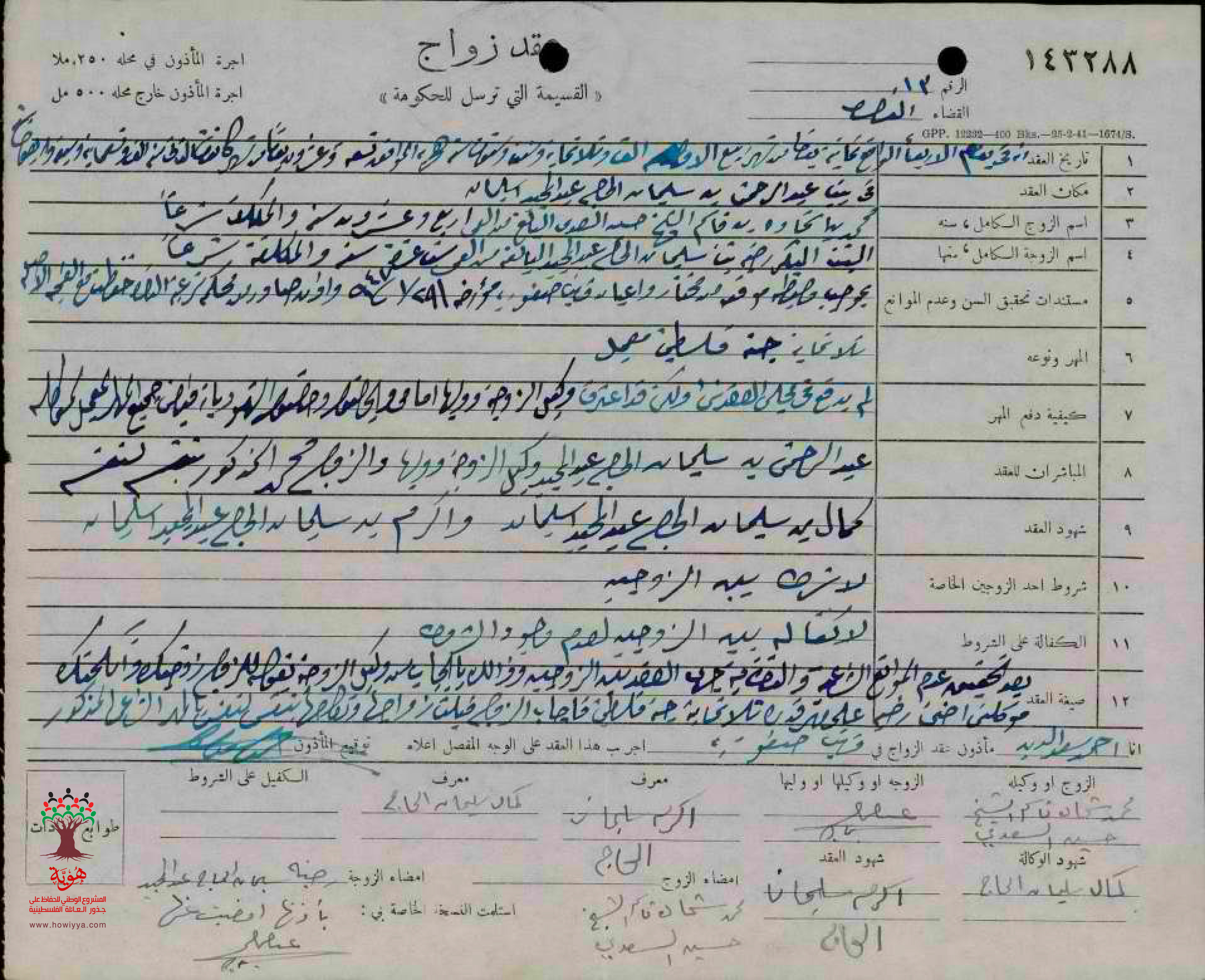 وثيقة زواج محمد شحادة السعدي - صفورية