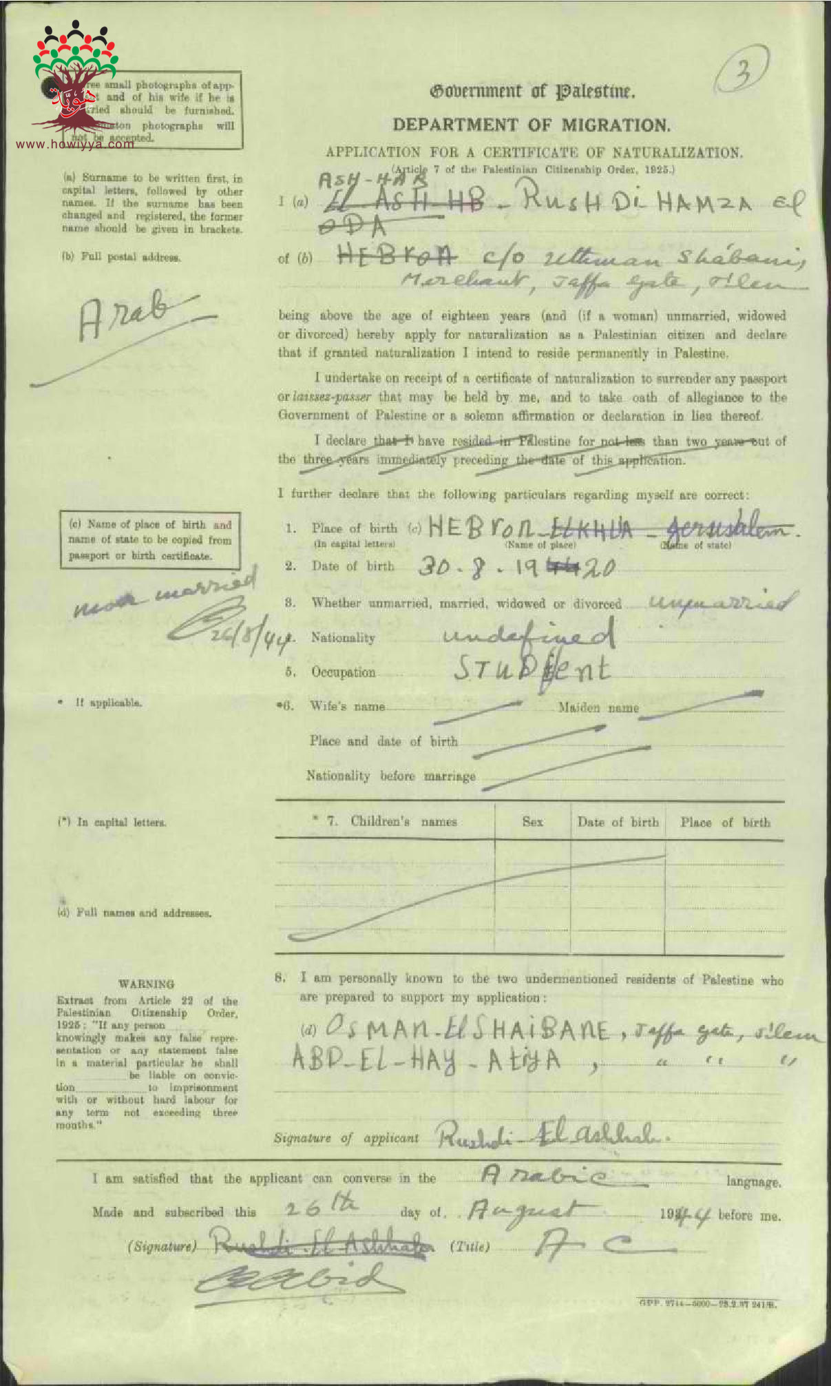 طلب الجنسية الفلسطينية - رشدي الاشهب - الخليل