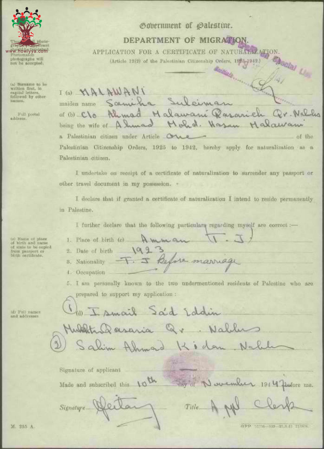 طلب الجنسية الفلسطينية - سميحة المعلواني - نابلس