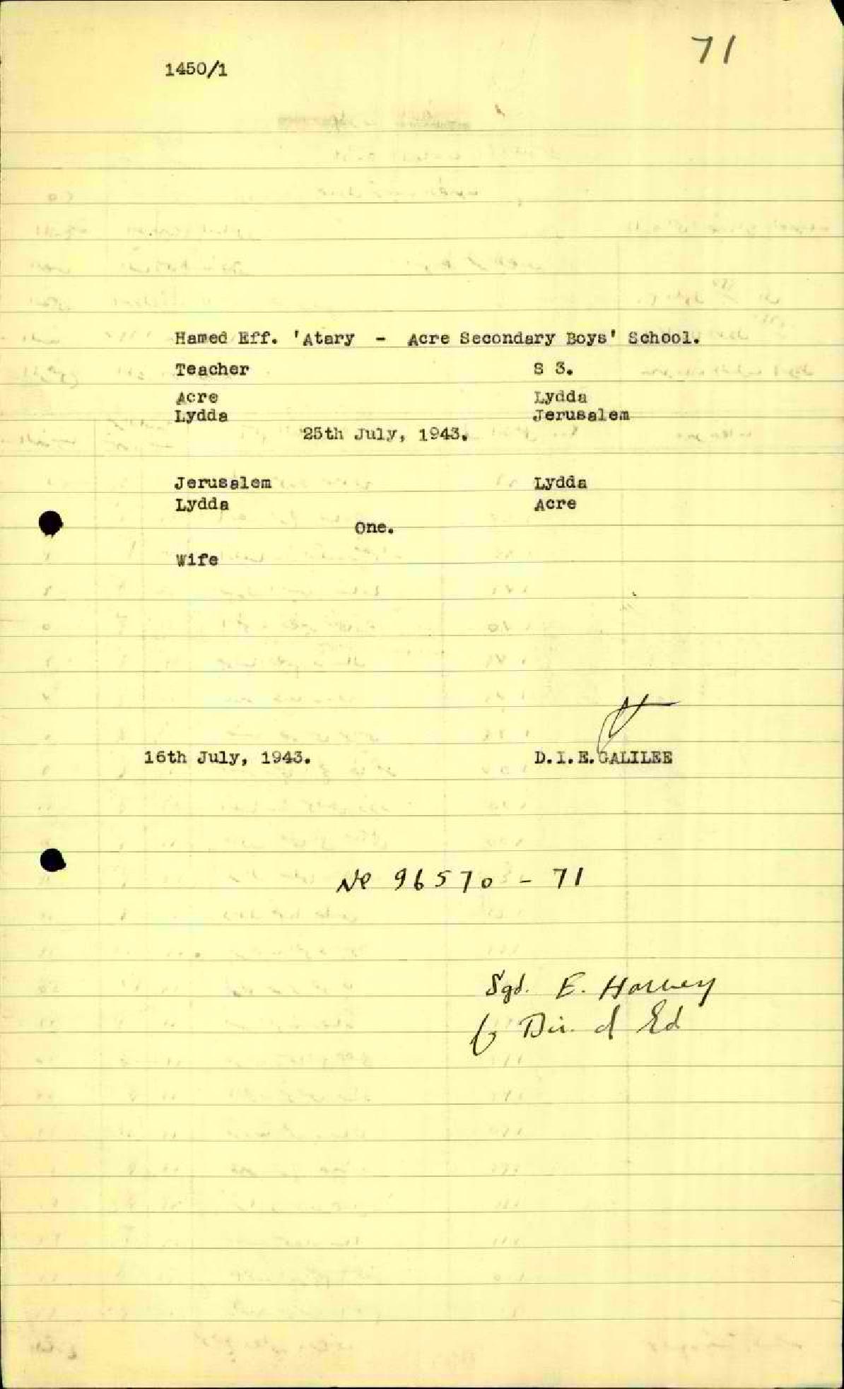 رسالة من مفتش المعارف الى المعلم حامد عطاري مرفقة باستمارة سفره