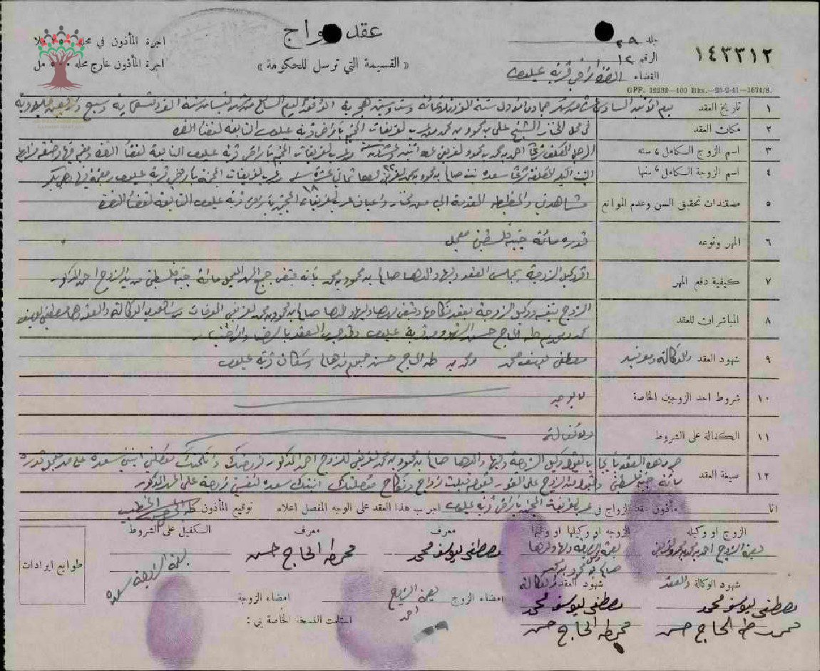 عقد زواج أحمد محمد محمود و سعدة صالح يوسف
