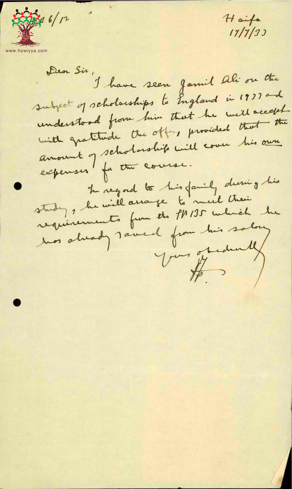 مجموعة رسائل بخصوص الموافقة على ارسال المعلم جميل علي في منحة الى احدى الجامعات في انكلترا