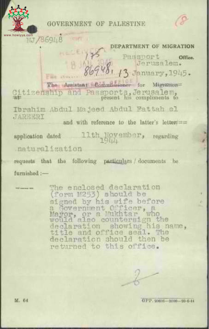 طلب الحصول على جنسية ل كوثر سليم أبو حصيرة زوجة إبراهيم الجريري