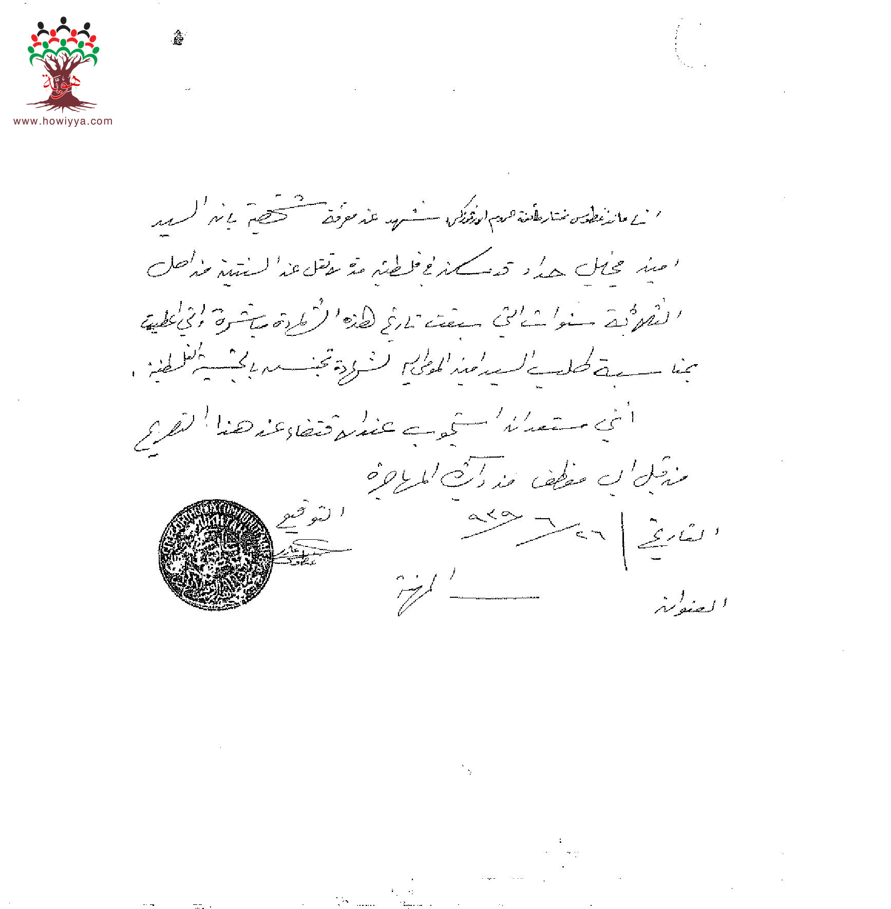 شهادة من المختار ل أمين حداد بخصوص طلب الجنسية/حيفا