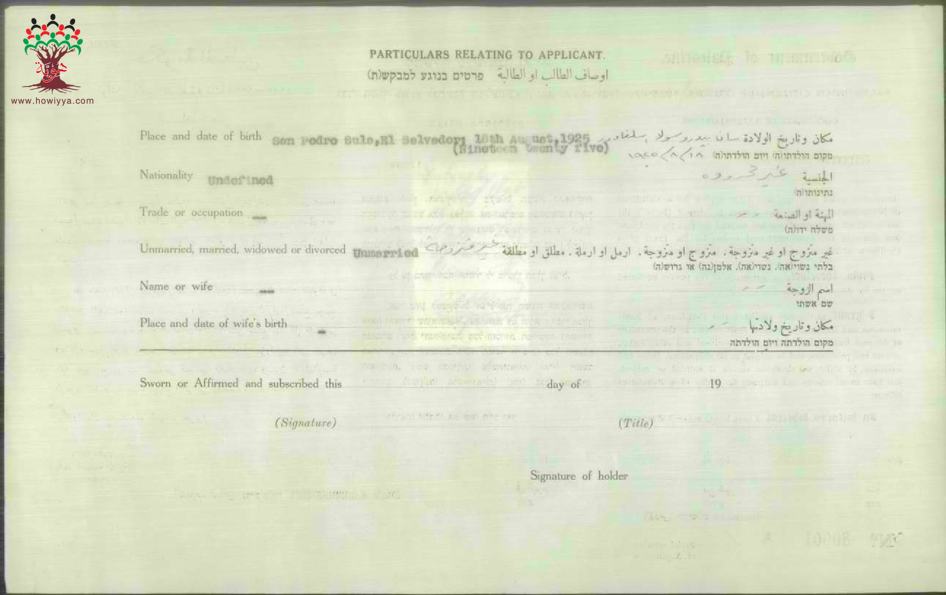 شهادة الجنسية الفلسطينية ل أولغا حوا