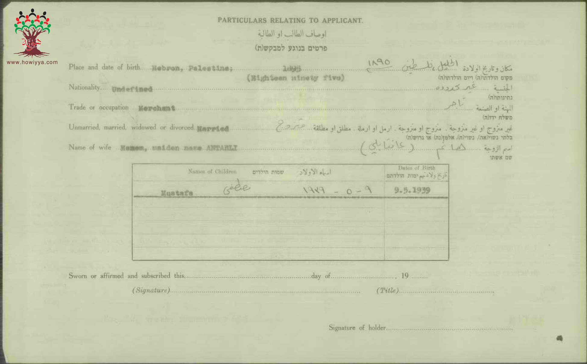 شهادة الجنسية الفلسطينية ل عبد الفتاح النتشة