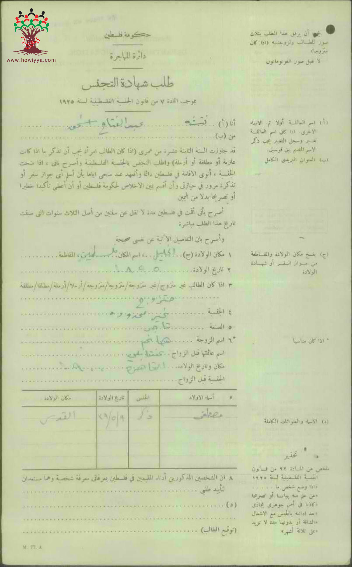 طلب الجنسية الفلسطينية-عبد الفتاح النتشة-الخليل