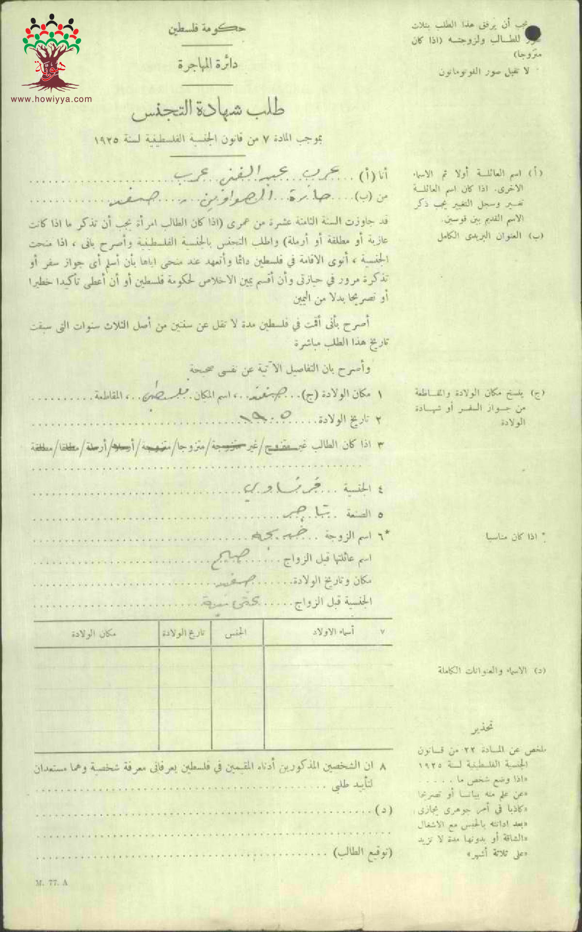 طلب الجنسية الفلسطينية-عرب عرب-صفد/الجزائر