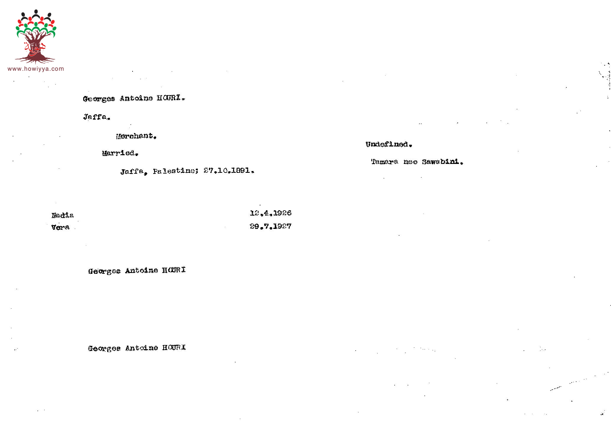 ورقة بيانات جورج حوري المرفقة بطلب الجنسية