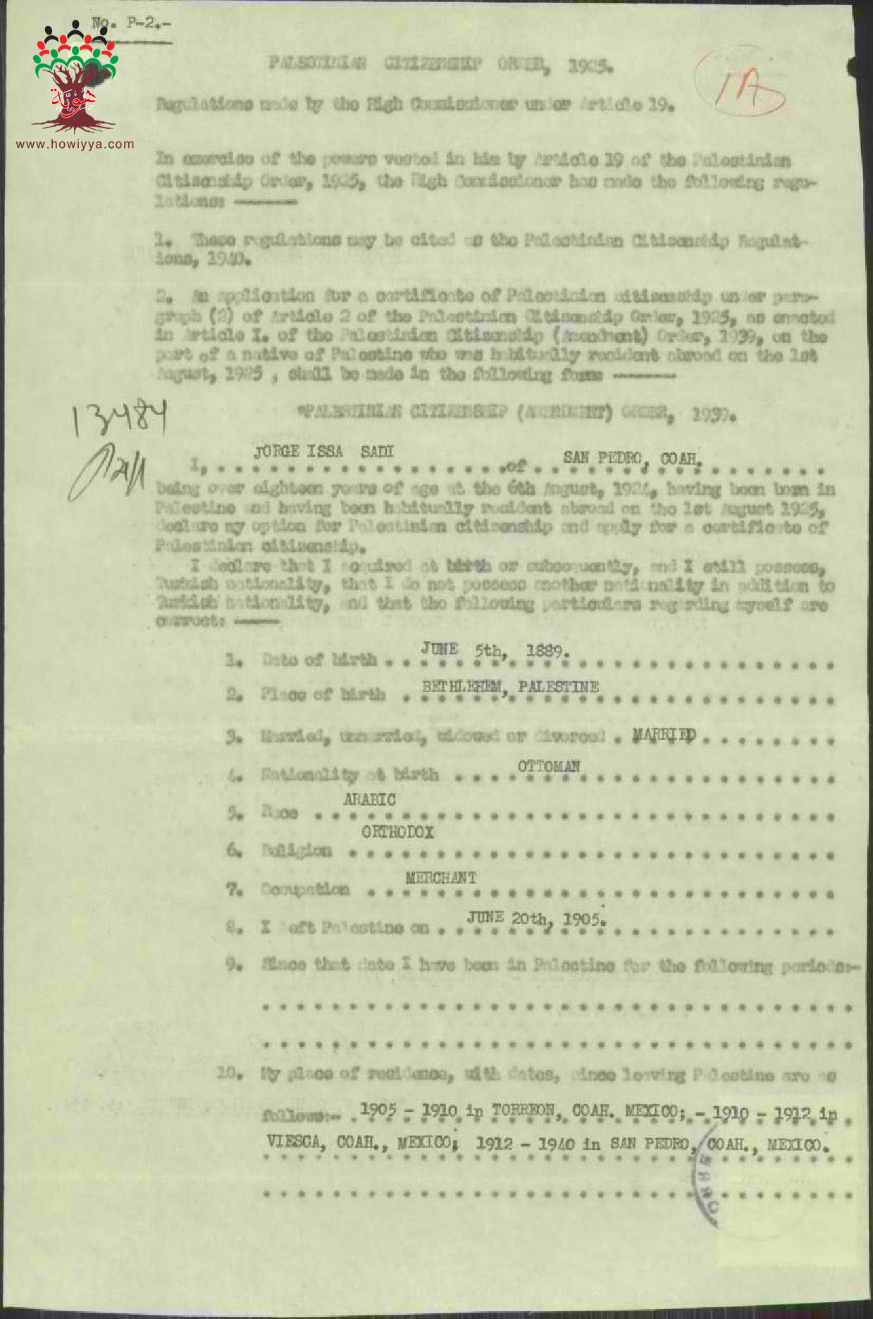 طلب الجنسية الفلسطينية-جورج سعدي-بيت لحم/المكسيك