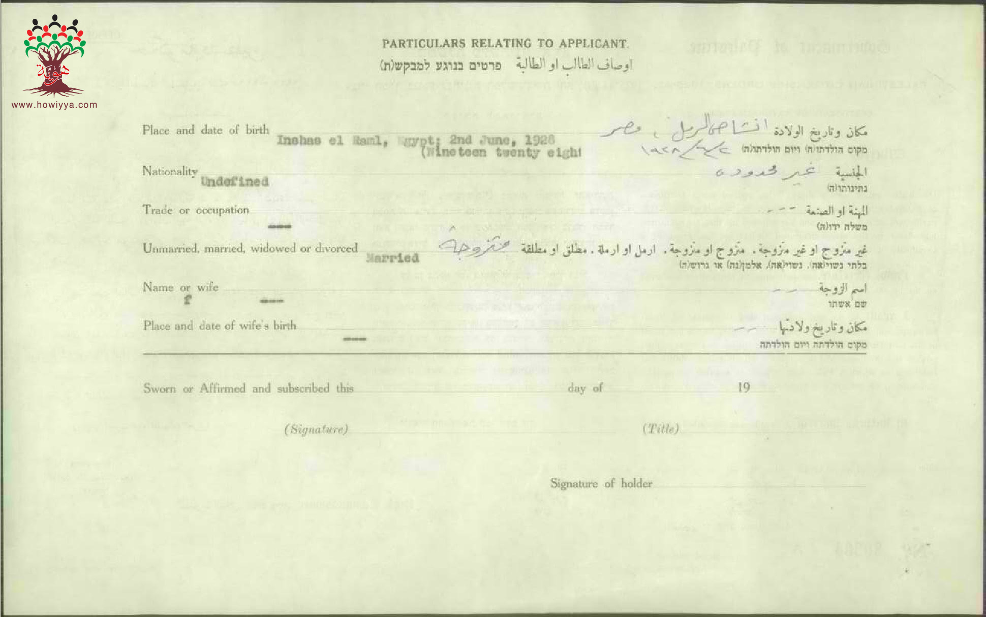 شهادة الجنسية الفلسطينية ل فتحية أبو شرخ
