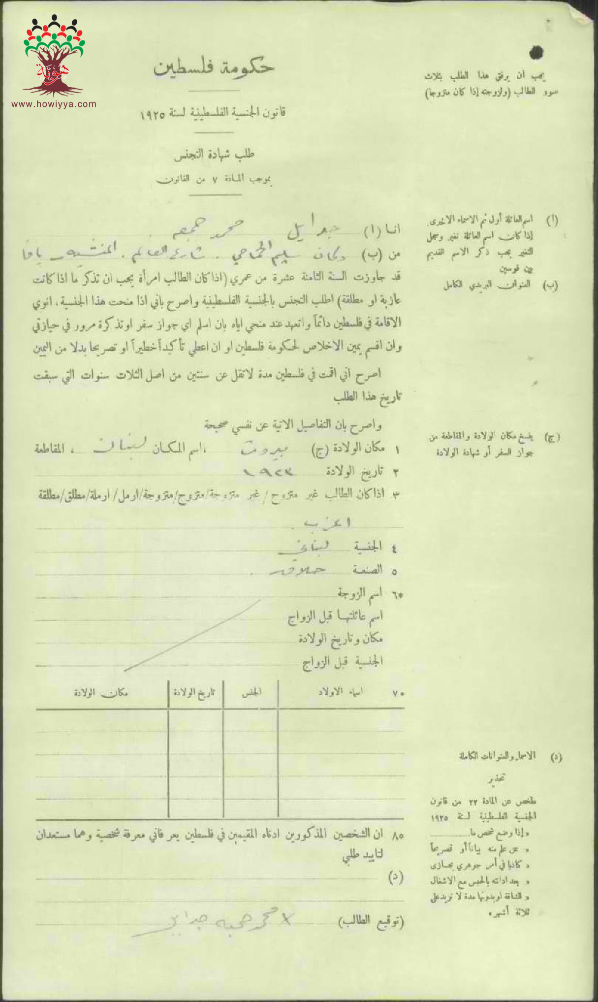 طلب الجنسية الفلسطينية-محمد جمعة جدايل-يافا/لبنان
