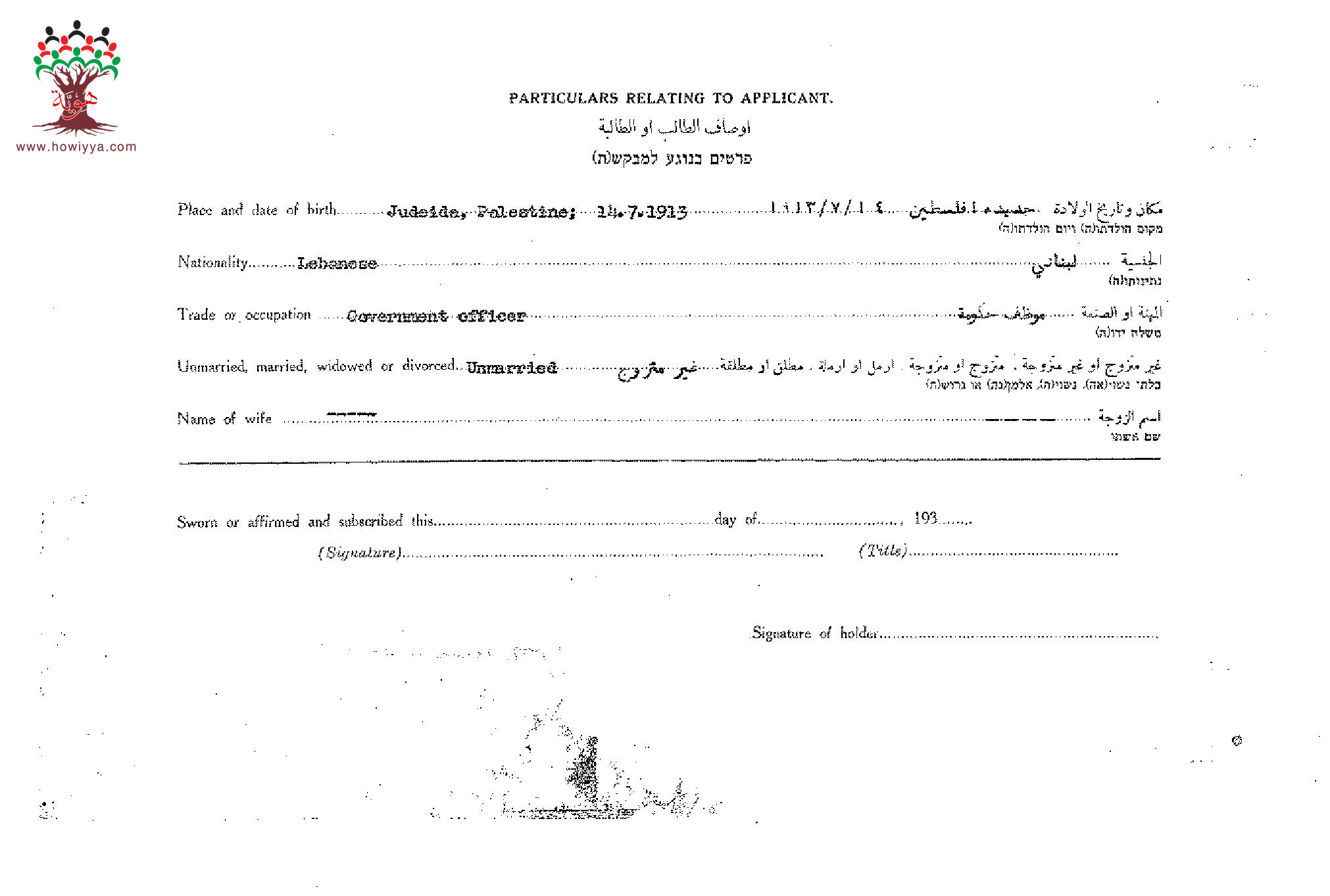 شهادة الجنسية الفلسطينية ل فؤاد جبارة