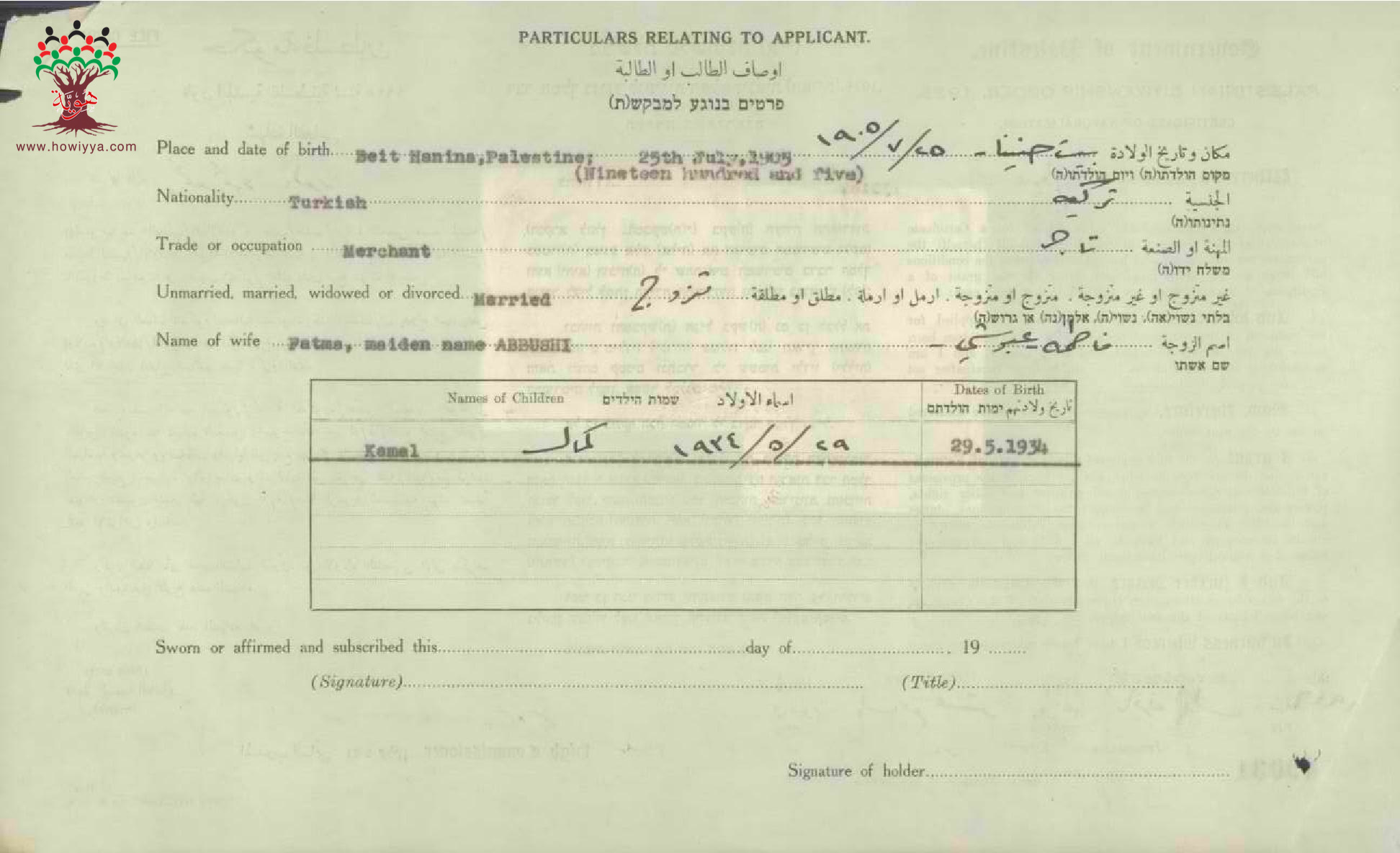 شهادة الجنسية الفلسطينية ل محمد الدر