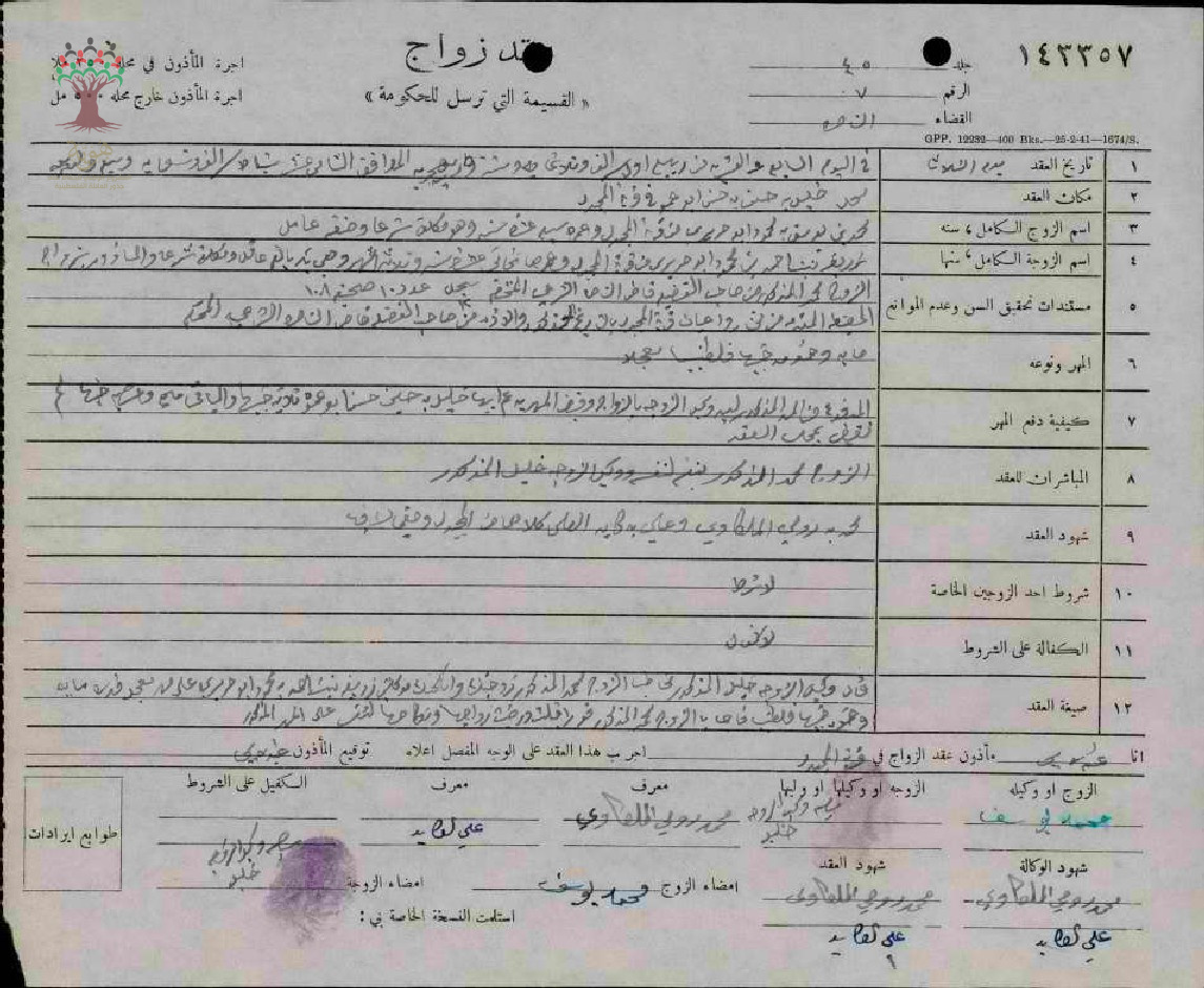 عقد زواج محمد يوسف محمود أبو حريري و زريفة أحمد محمد أبو حريري