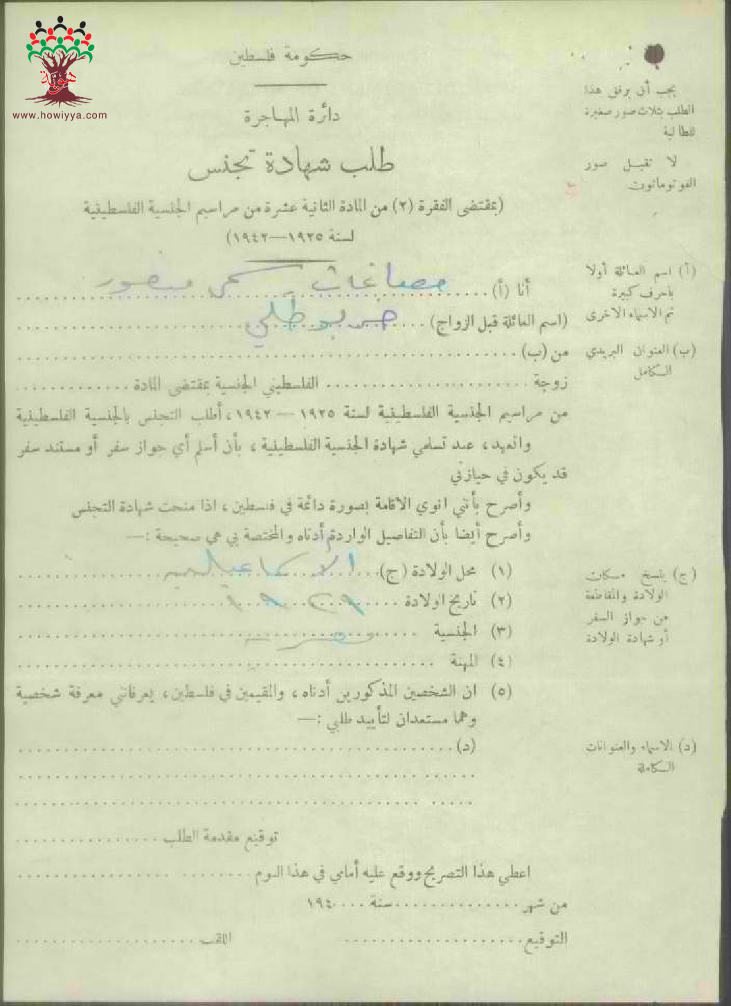 طلب الجنسية الفلسطينية-مصاغات منصور-سلمة/مصر