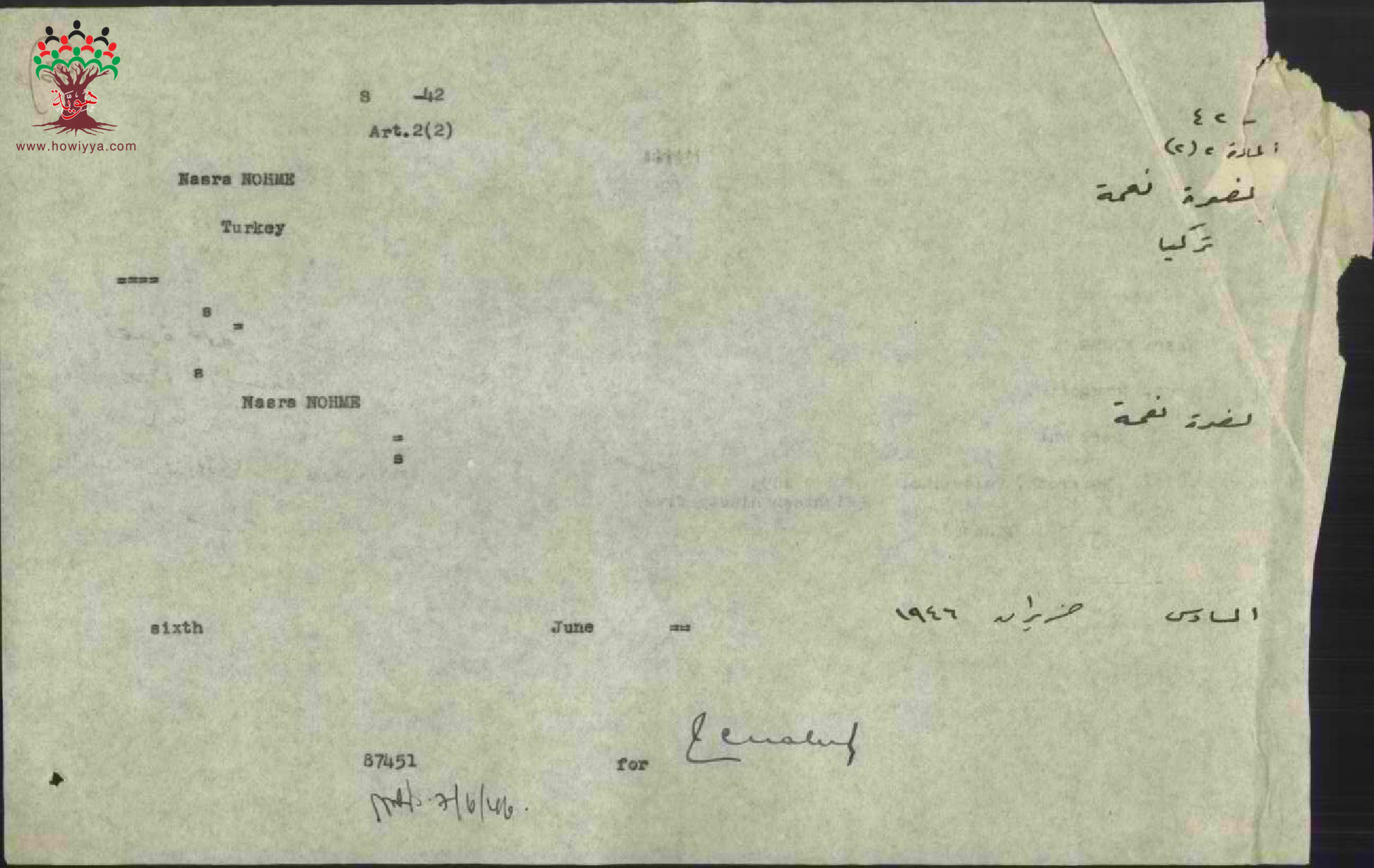 ورقة بيانات نصرة نعمة المرفقة بطلب الجنسية