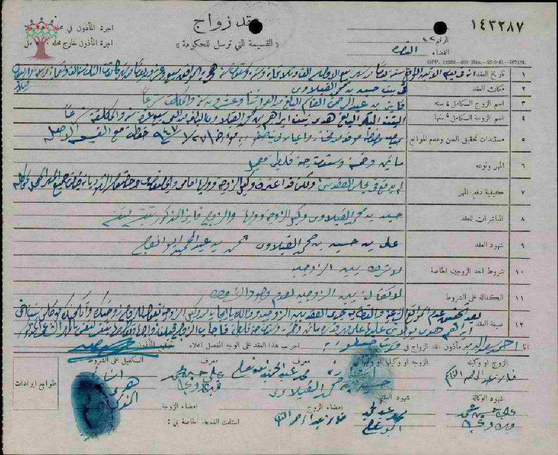 اسم الزوج فايز عبد الرحمن القاسم-صفورية
