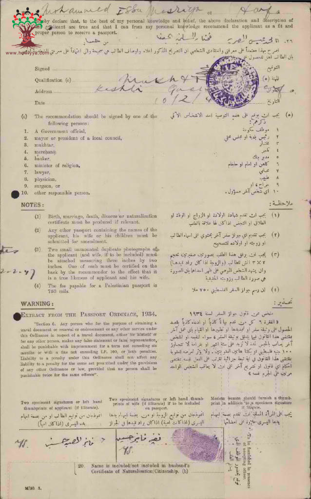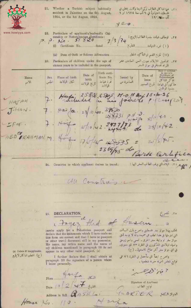 طلب جواز سفر فلسطيني - فايز العبد حسين - حيفا