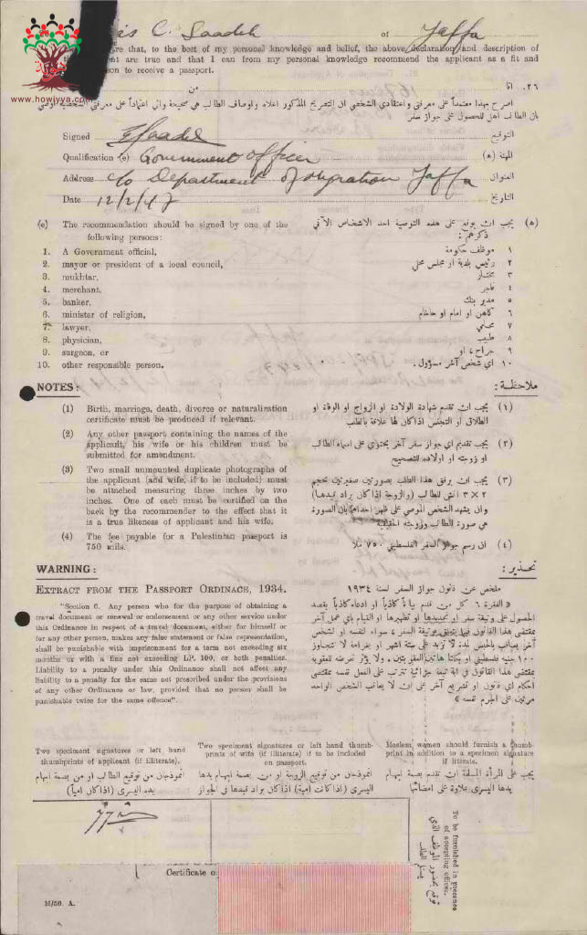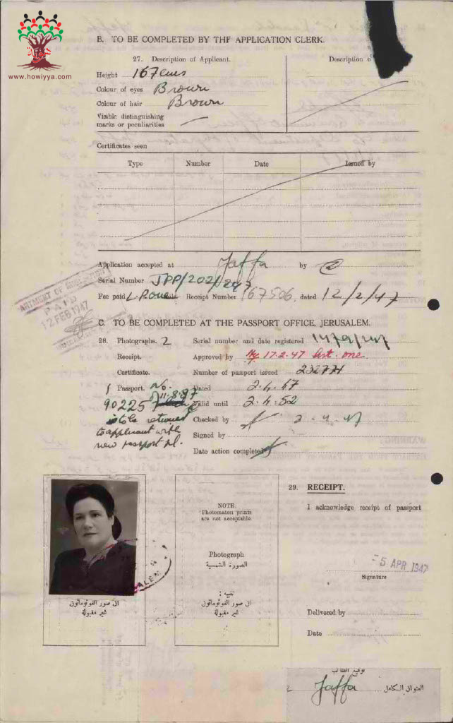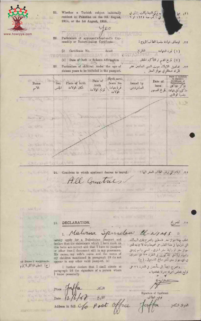 طلب جواز سفر فلسطيني - مابرينا النمس - يافا