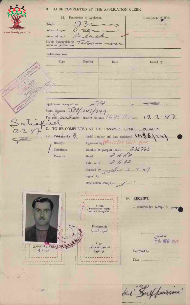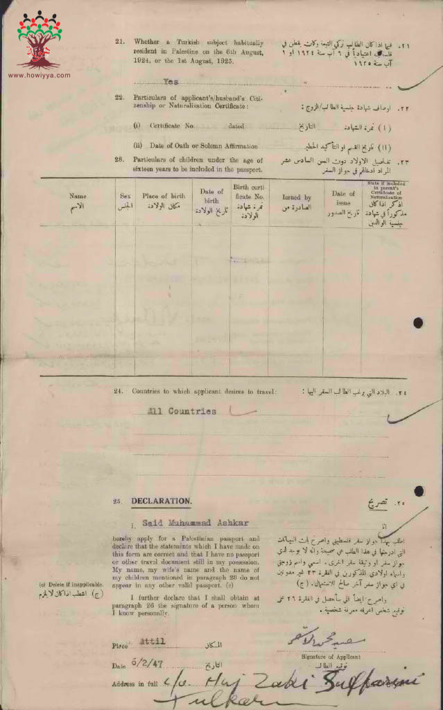 طلب جواز سفر فلسطيني - سعيد محمد أشقر - عتيل
