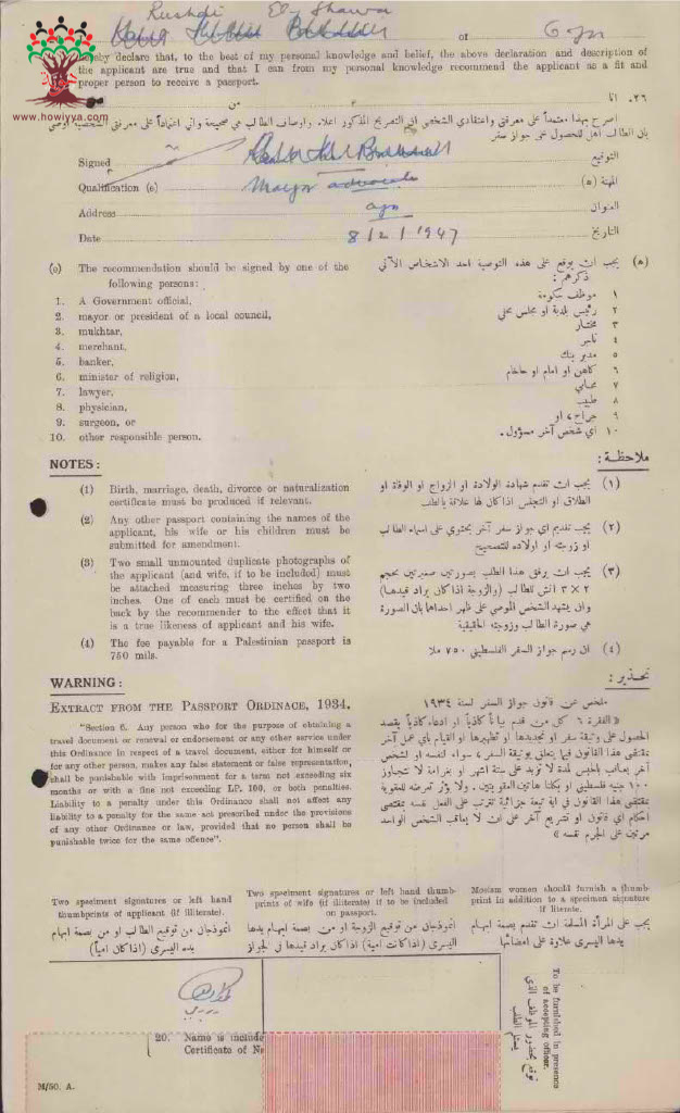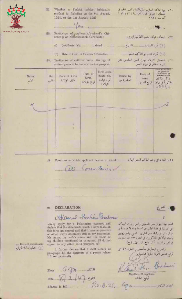 طلب جواز سفر فلسطيني - محمد كمال ابراهيم بربري - غزة