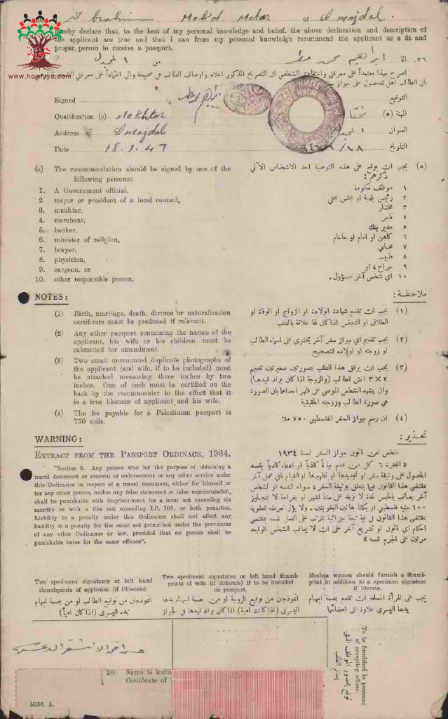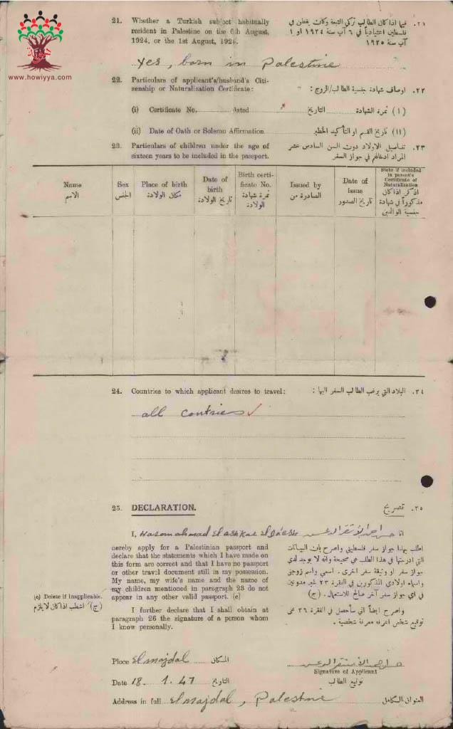طلب جواز سفر فلسطيني - حسن أحمد الأشقر الدعش - المجدل