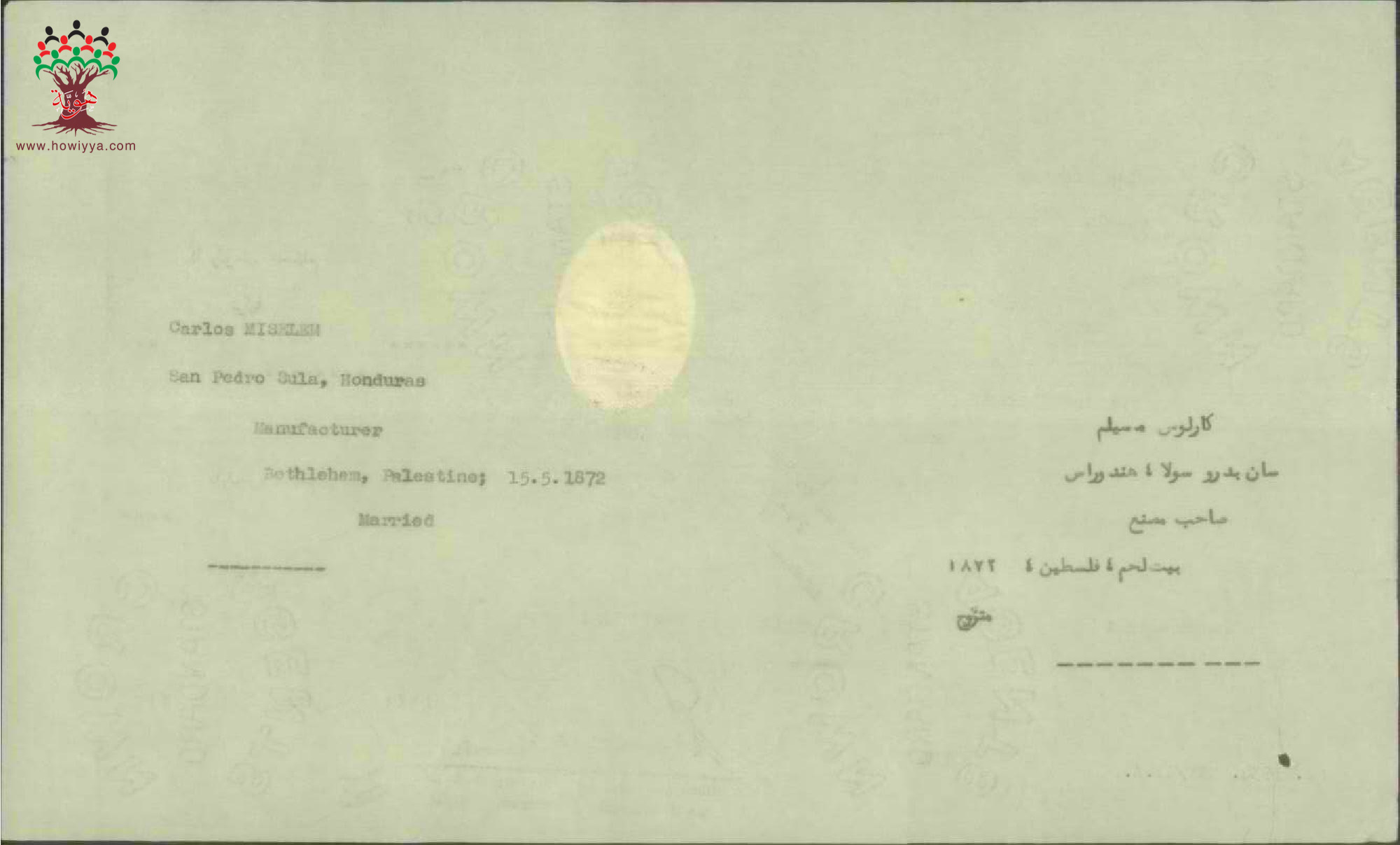 ورقة بيانات - كارلوس مسيلم المرفقة بطلب الجنسية الفلسطينية