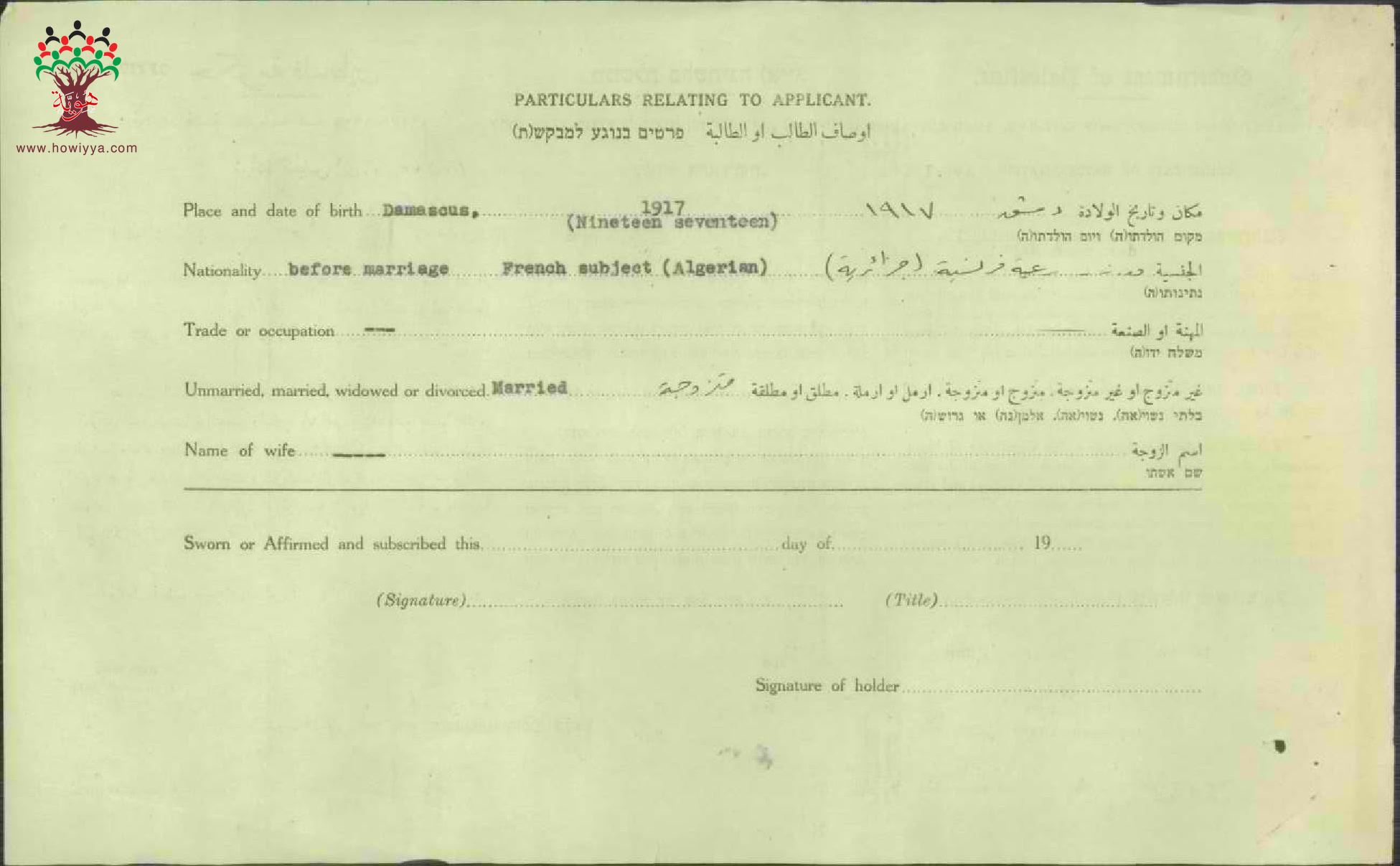 شهادة الجنسية الفلسطينية ليسرى حسن شملوطي
