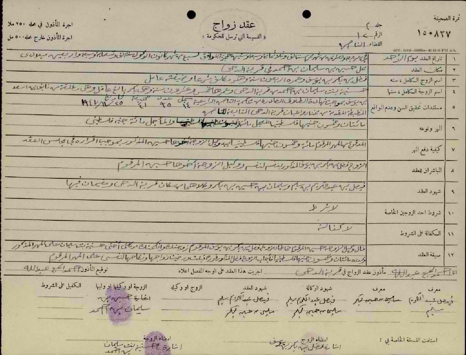 اسم الزوجة حسنية سليمان أحمد-الدحي