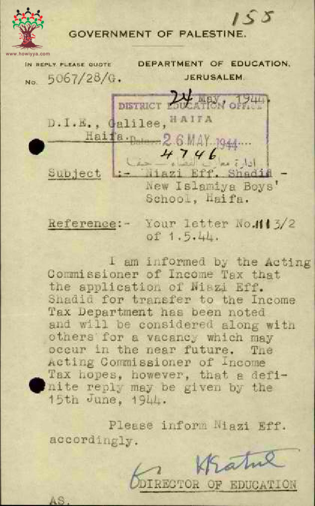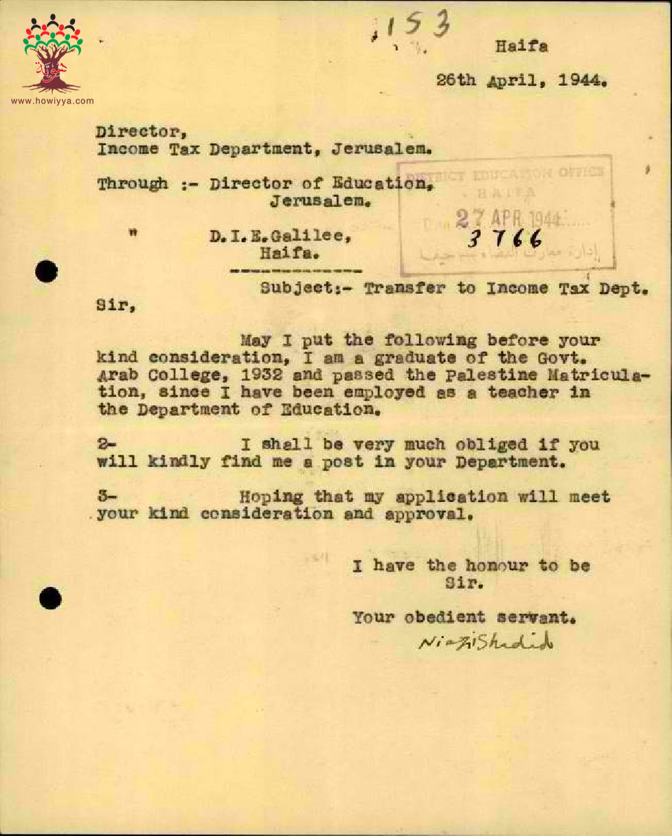 مجموعة رسائل بخصوص نقل المعلم نيازي شديد الى ادارة الدخل