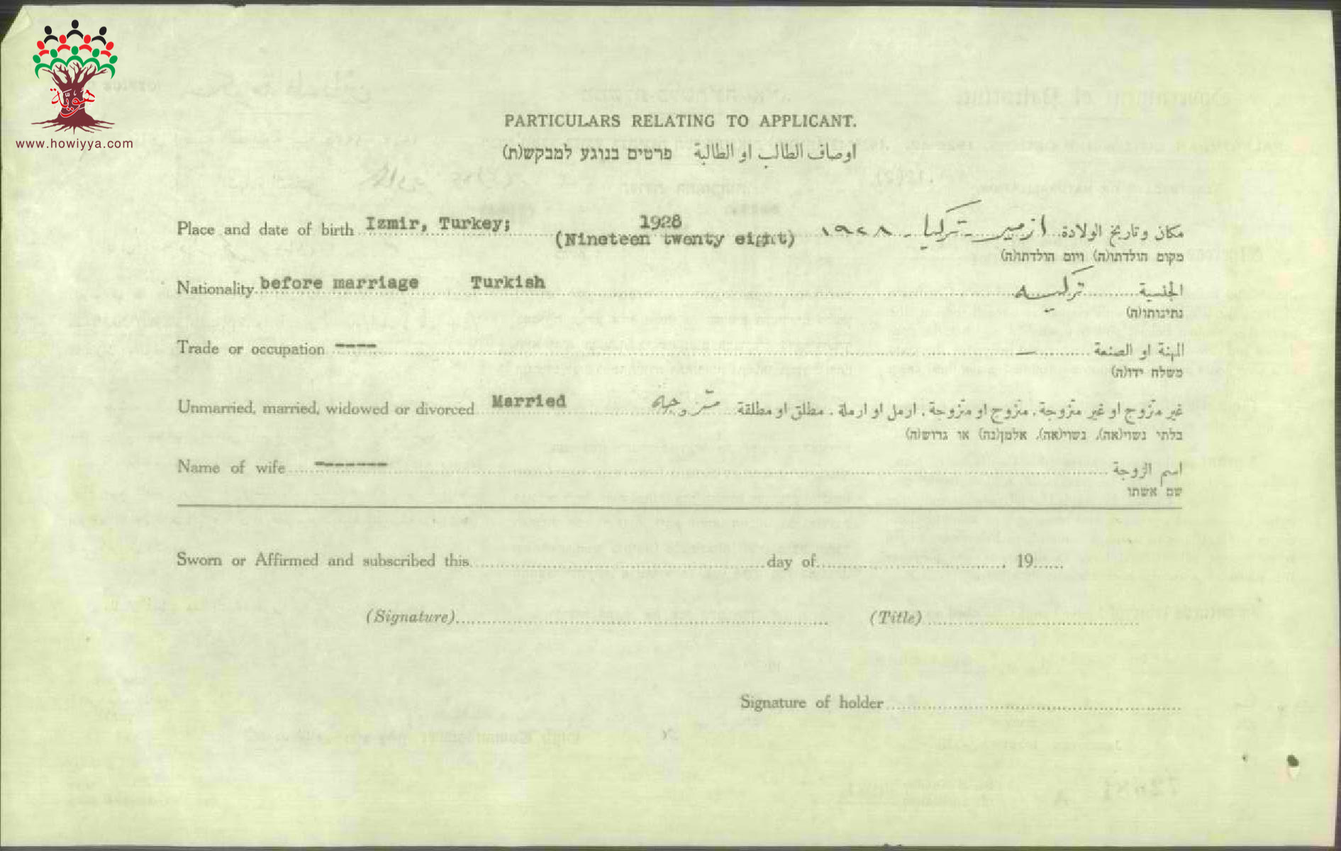 شهادة الجنسية الفلسطينية لوداد تميمي الدجاني