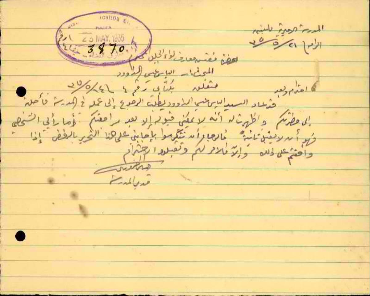 رسائل بخصوص امكانية اعادة تعيين المعلم الياس البعناوي في مدرسة الرامة