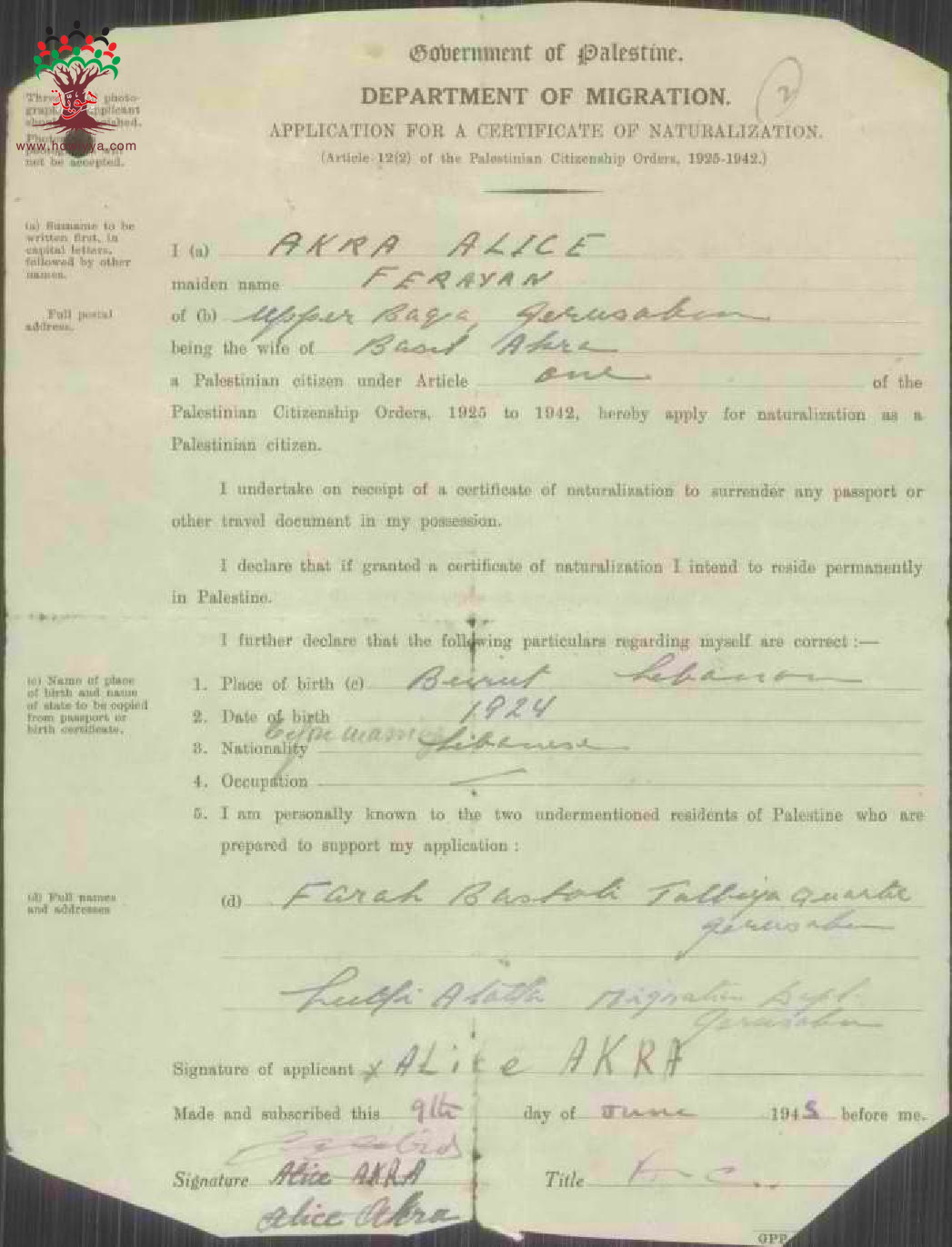 طلب الجنسية الفلسطينية - أليس عكرة - القدس