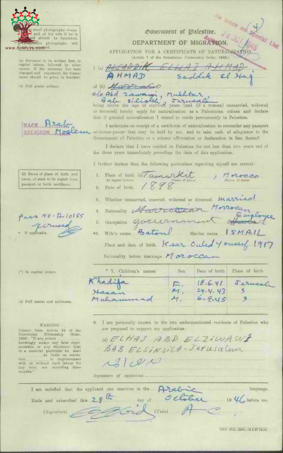 طلب الجنسية الفلسطينية - صديق الحاج أحمد - القدس