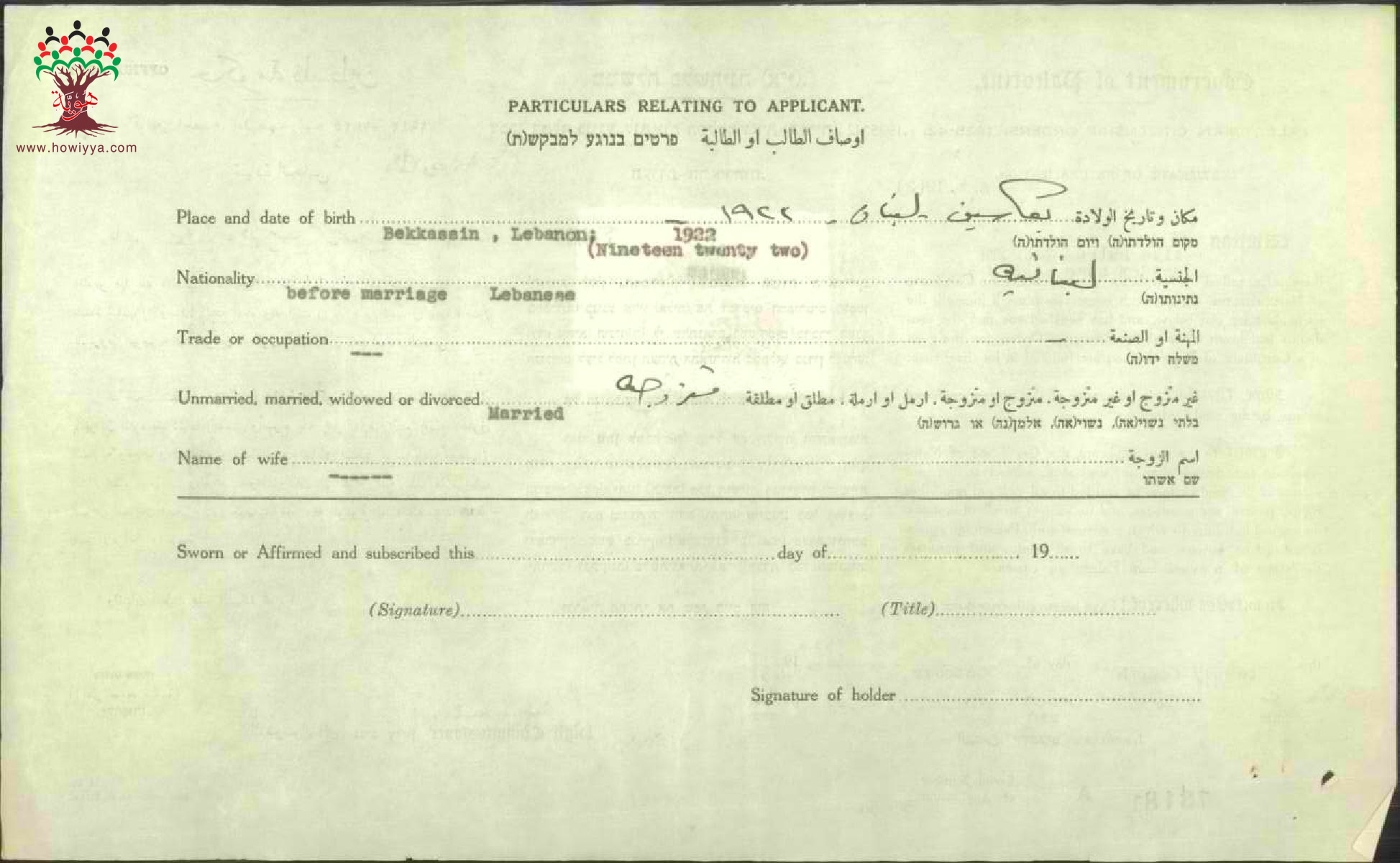 شهادة الجنسية الفلسطينية - عليا بطرس زعمط