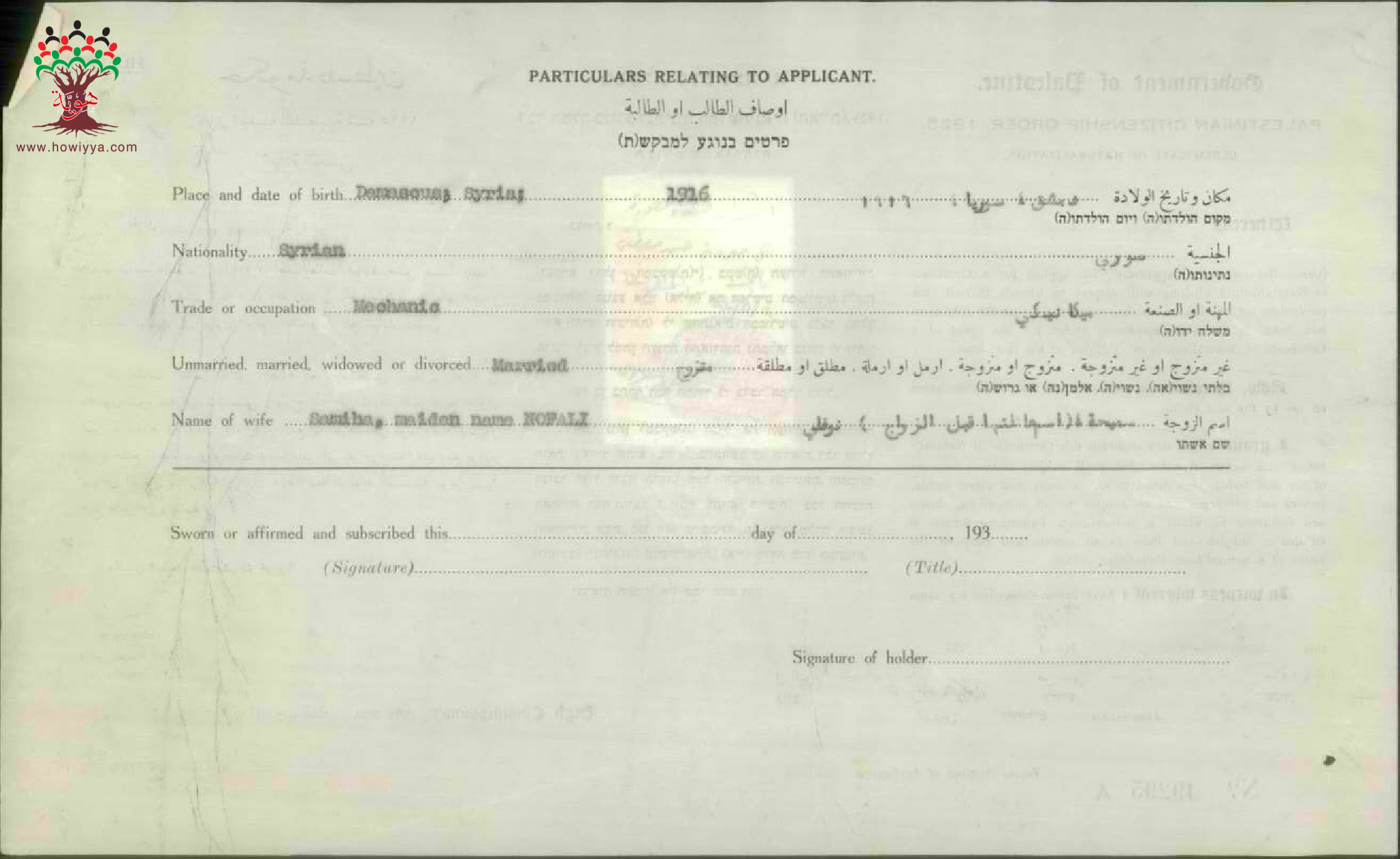 شهادة الجنسية الفلسطينية لحسن مصطفى ناجي