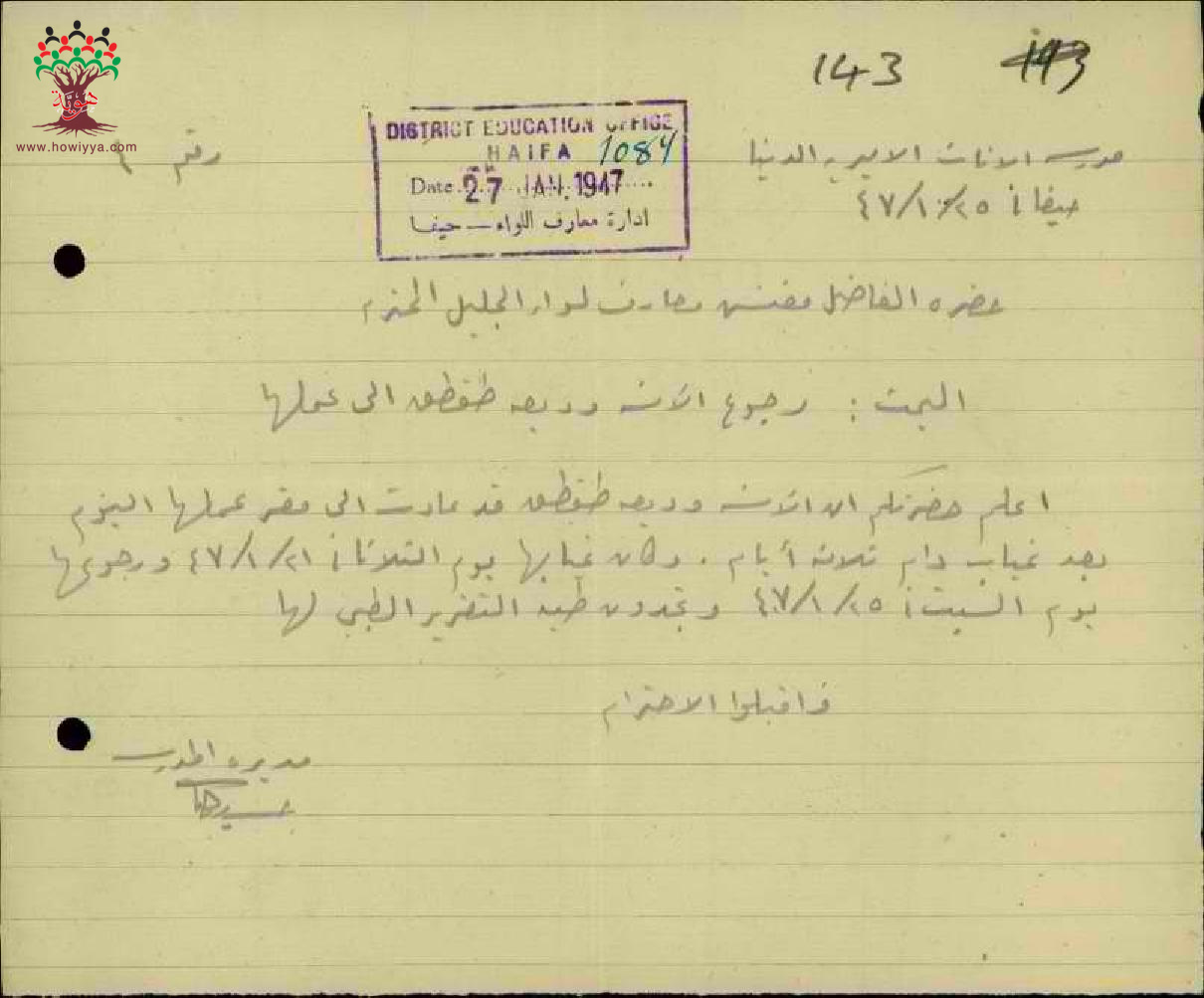 رسائل بخصوص عودة المعلمة وديعة طقطق الى العمل